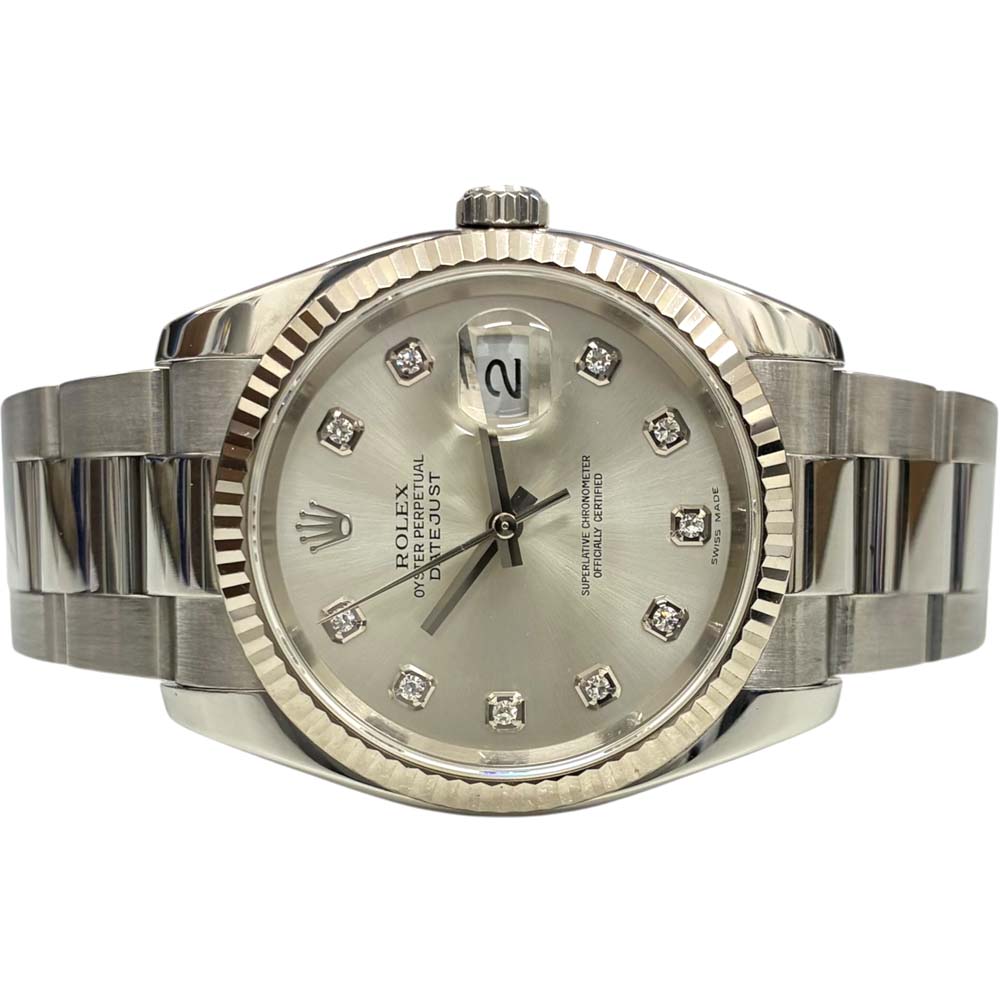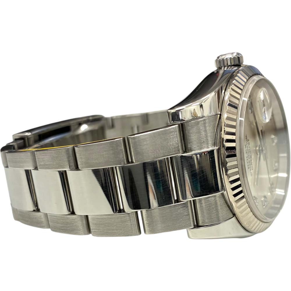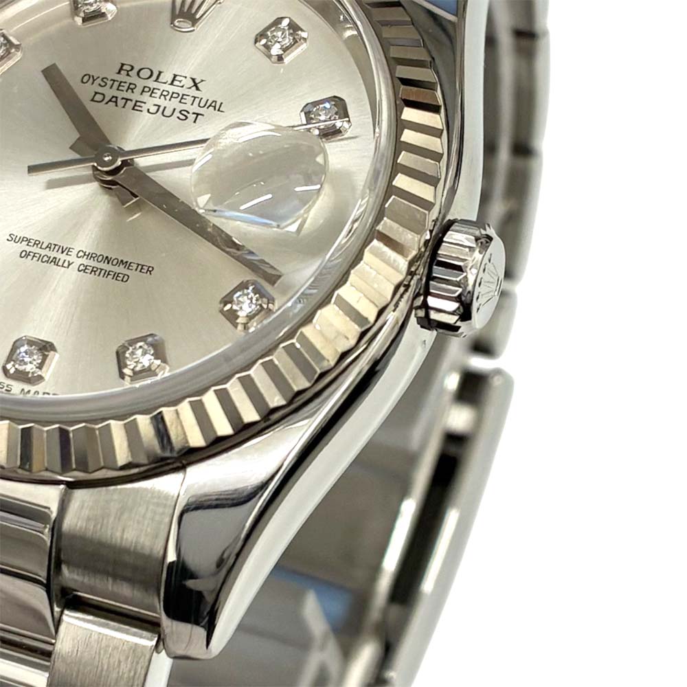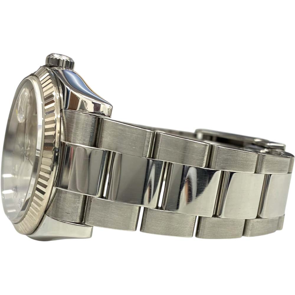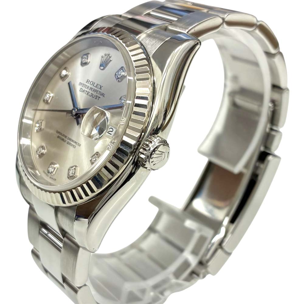 | 商品説明 | ロレックス デイトジャスト36(モデル番号: 116234G)は、エレガントさと機能性を兼ね備えた腕時計です。このモデルは、伝統的な36mmケースサイズで、多くの場面で活躍します。特徴として、フルーテッドベゼルがあり、高級感を演出します。文字盤にはダイヤモンドのインデックスが配置され、視認性と豪華さを兼ね備えています。ブレスレットはジュビリーが使われており、快適な装着感があります。自動巻きムーブメントを搭載しており、精確な時刻を提供します。ステンレススチールとホワイトゴールドのコンビネーションが、この時計のクラシックで洗練された印象を一層引き立てます。