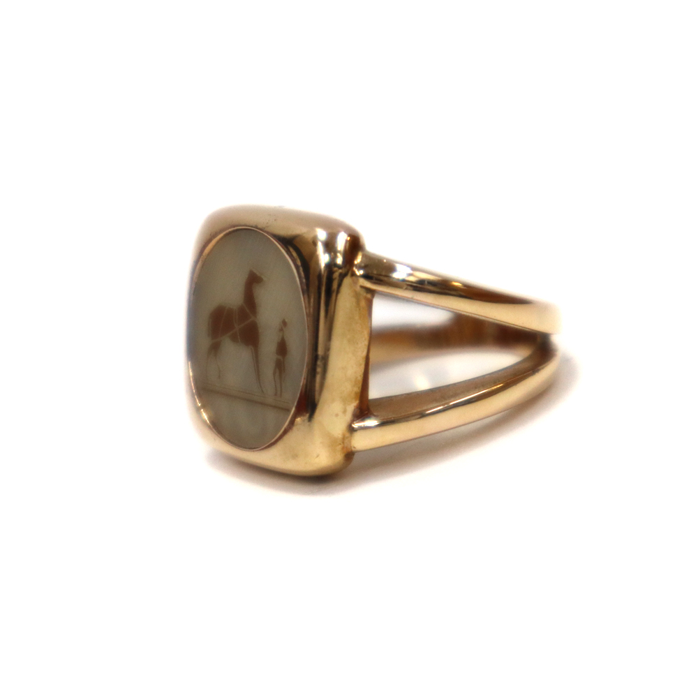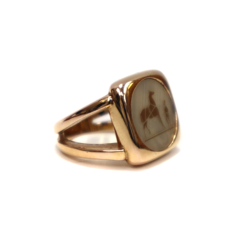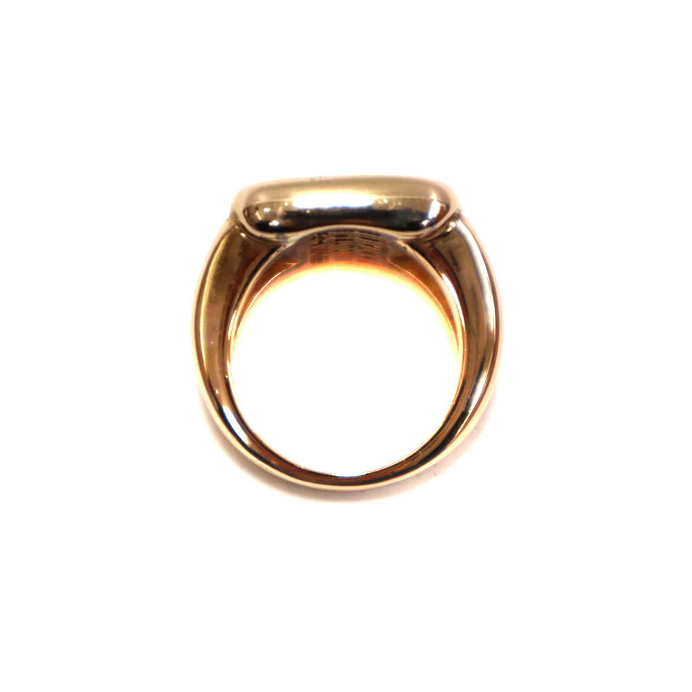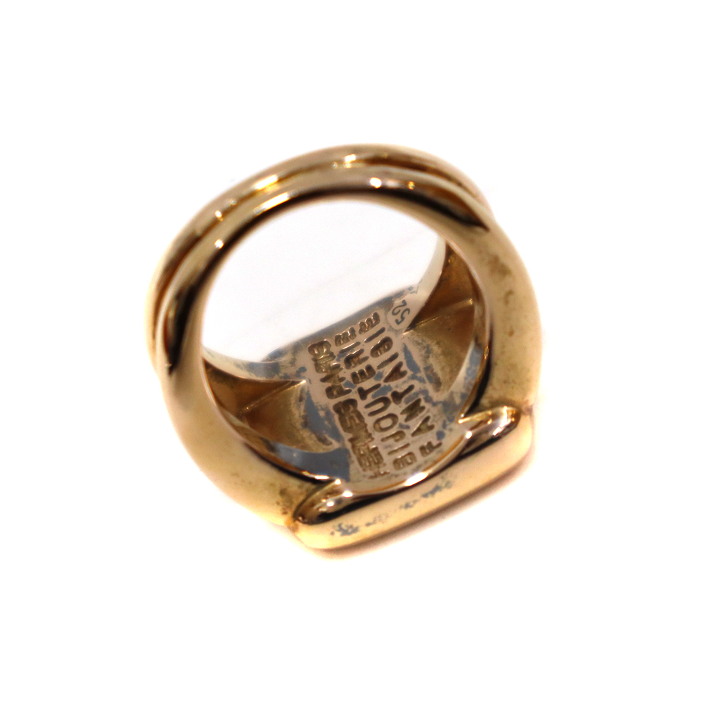 エルメスの象徴的なロゴモチーフ「セリエ」が描かれたマザーオブ・パール(黒蝶貝)のリングです。