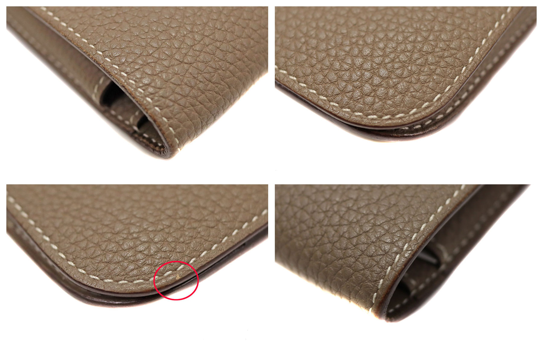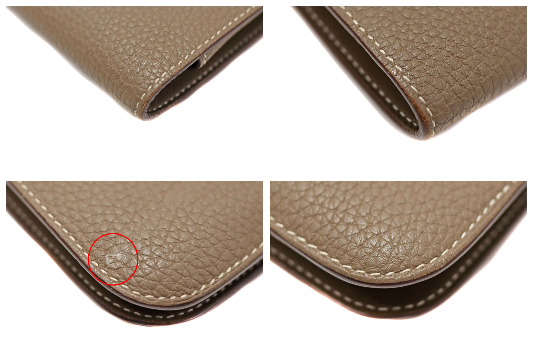 | 商品状態 | ■本体の革表面に汚れ ■本体の革のコバ部分にヒビあり ■金具に擦れあり ■留め具の革表面とコバにキズあり ■内側レザーにポケット跡あり ■コインケースのカードポケットに汚れあり ■店頭でも販売しているため、画像にないキズ等がつく可能性がありますので予めご了承くださいませ。 |