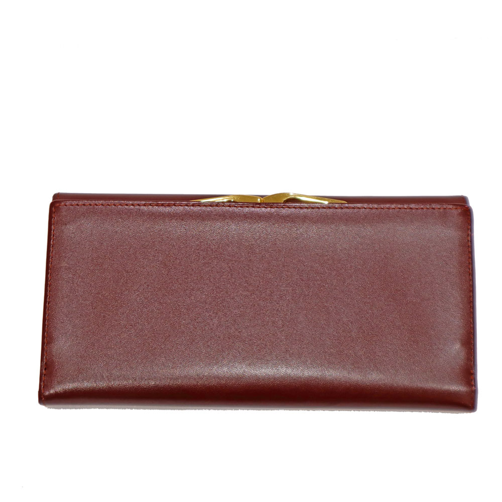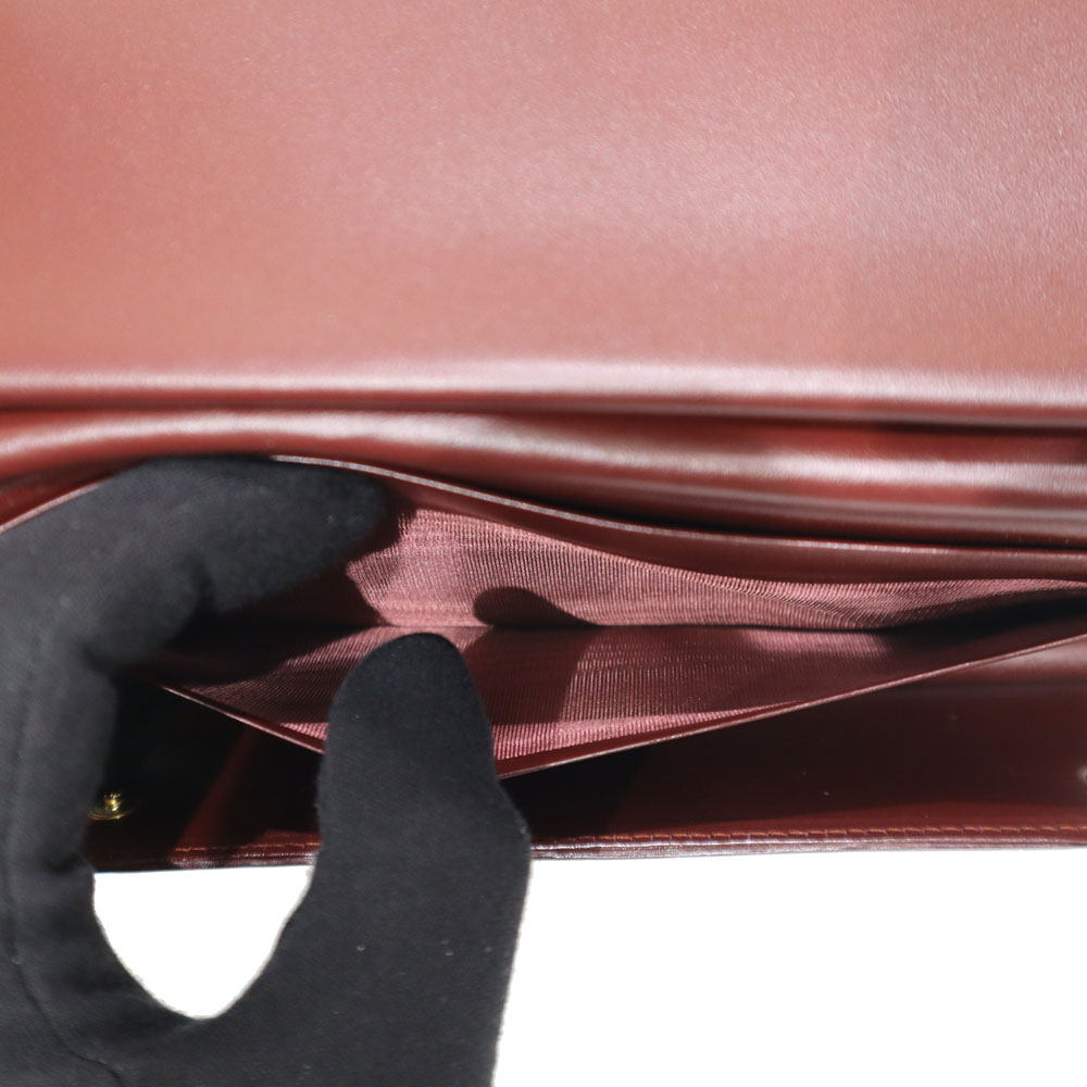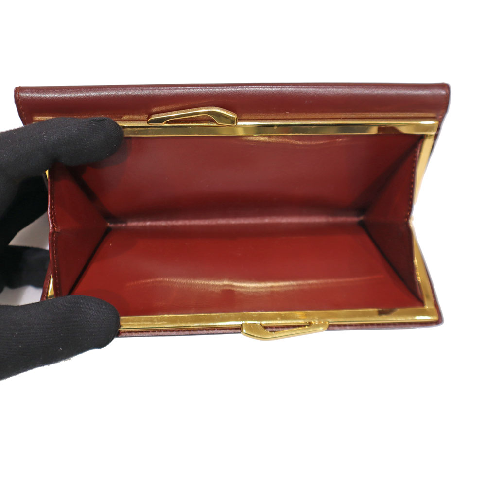 今回の長財布の特徴はデザイン。 上品なボルドーカラーにゴールドの金具が目を引き、正面には2Cロゴが映えます。 機能面では、背面に大きく開くがま口の小銭入れが特徴的。ポケットも豊富に備わっており、収納も差し支えありません。