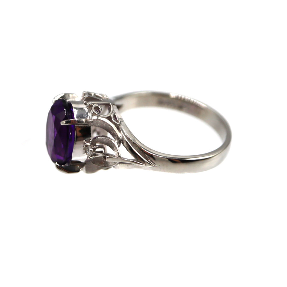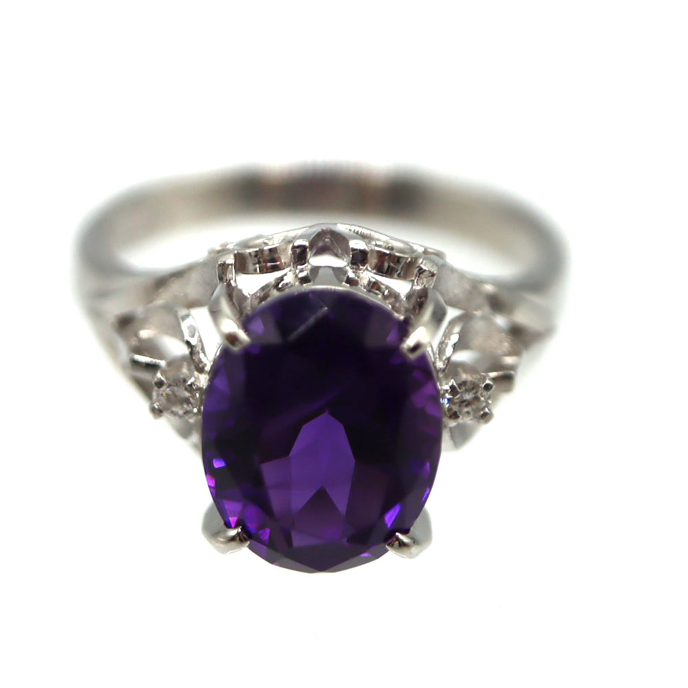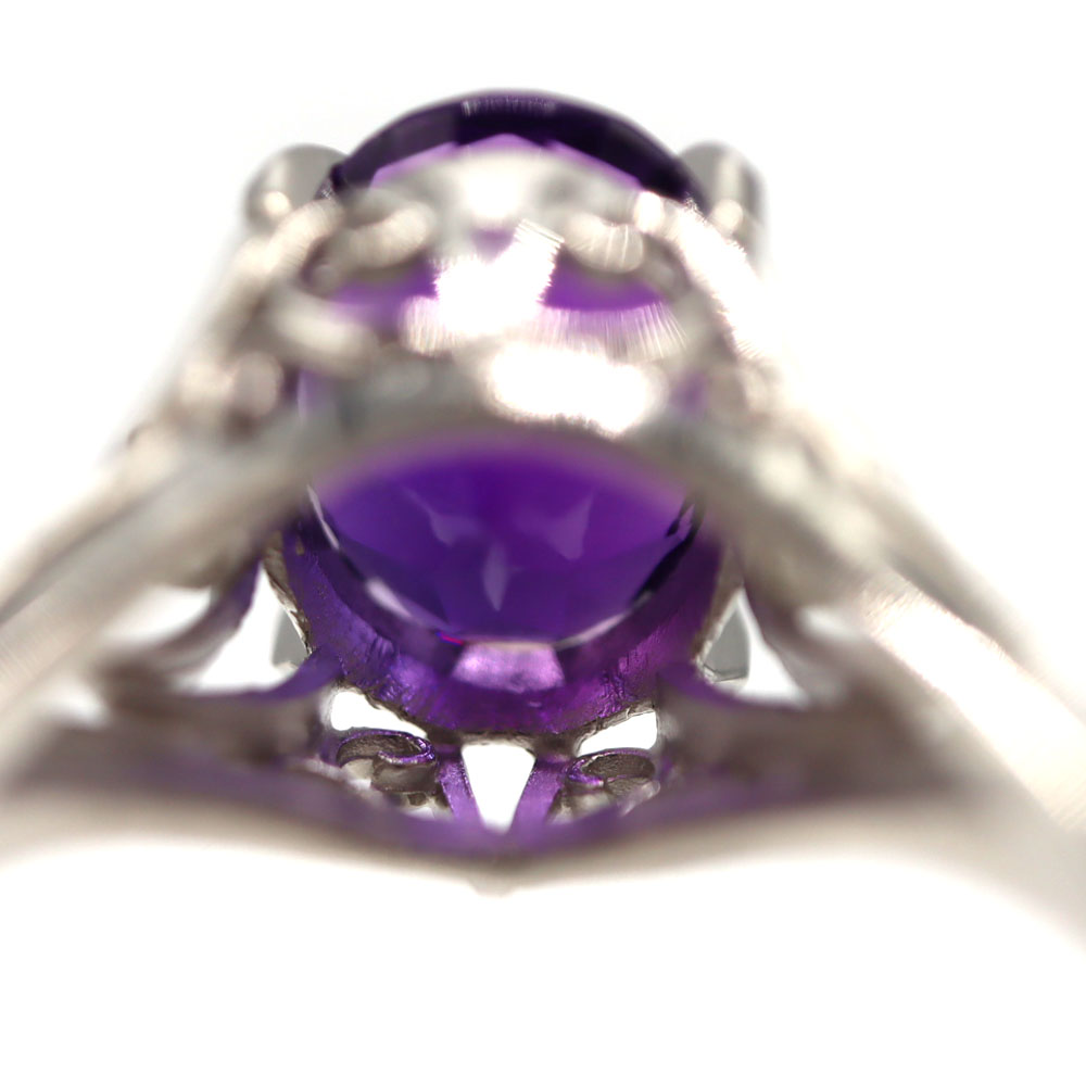 艶やかなアメシストをセンターに配した、華やかで上品なデザインのリングです。