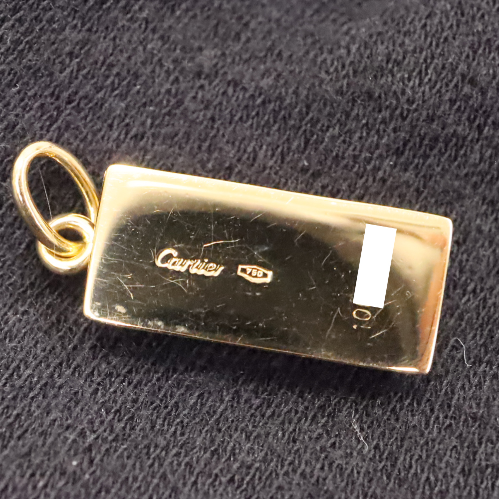 カルティエの刻印が入ったインゴットのトップです。 見た目のインパクトもさることながら、重量感もあります。 あまり他の人とは被りにくいアイテムなので、おすすめです。