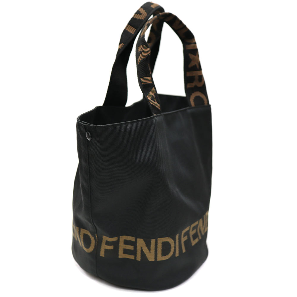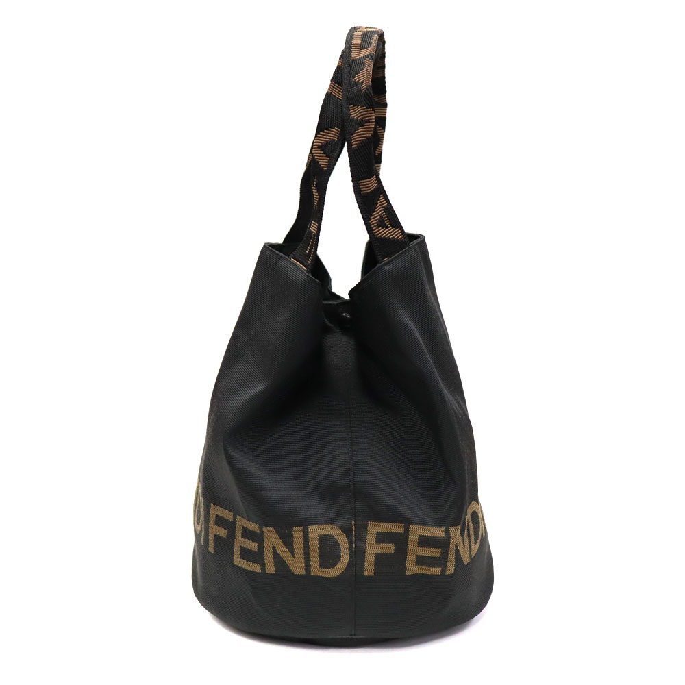 バケツ型で丸みを帯びた形にブラウンのFFロゴが特徴のハンドバッグ。