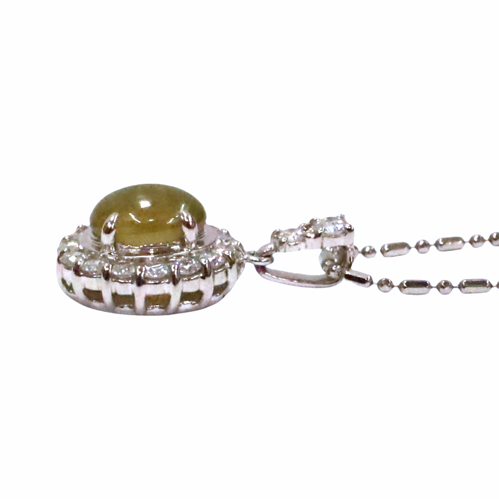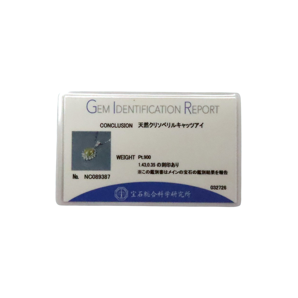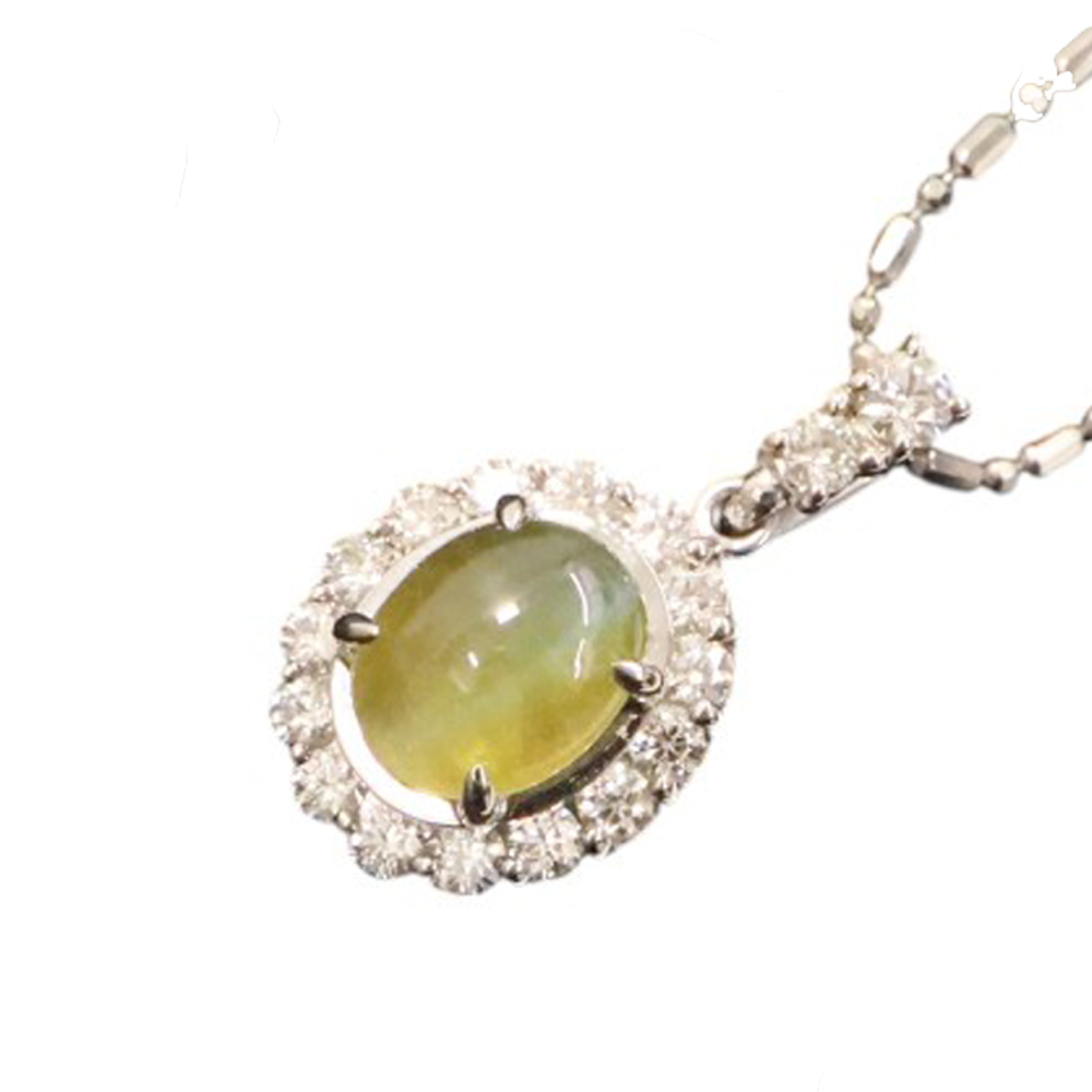 | 素材 | チェーン:Pt850【プラチナ850】 トップ:Pt900【プラチナ900】 キャッツアイ:1.43ct ダイヤモンド:0.35ct |