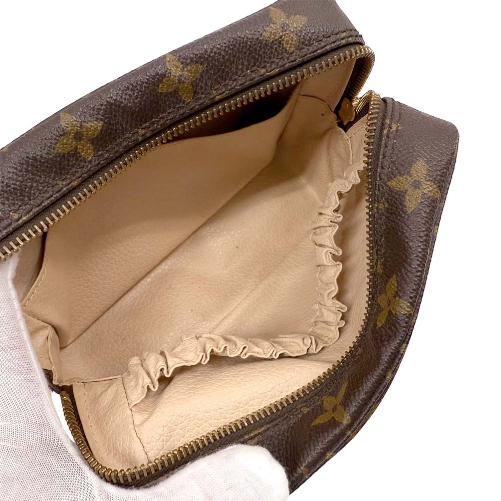 | 商品説明 | 「トゥルーストワレット18」は、モノグラム・キャンバス素材で作られており、耐久性が高く、軽量で持ち運びやすいのが特徴です。サイズは横18cm×縦12cmとコンパクトでありながら、リップやファンデーションなどのコスメや小物をしっかり収納できます。 |