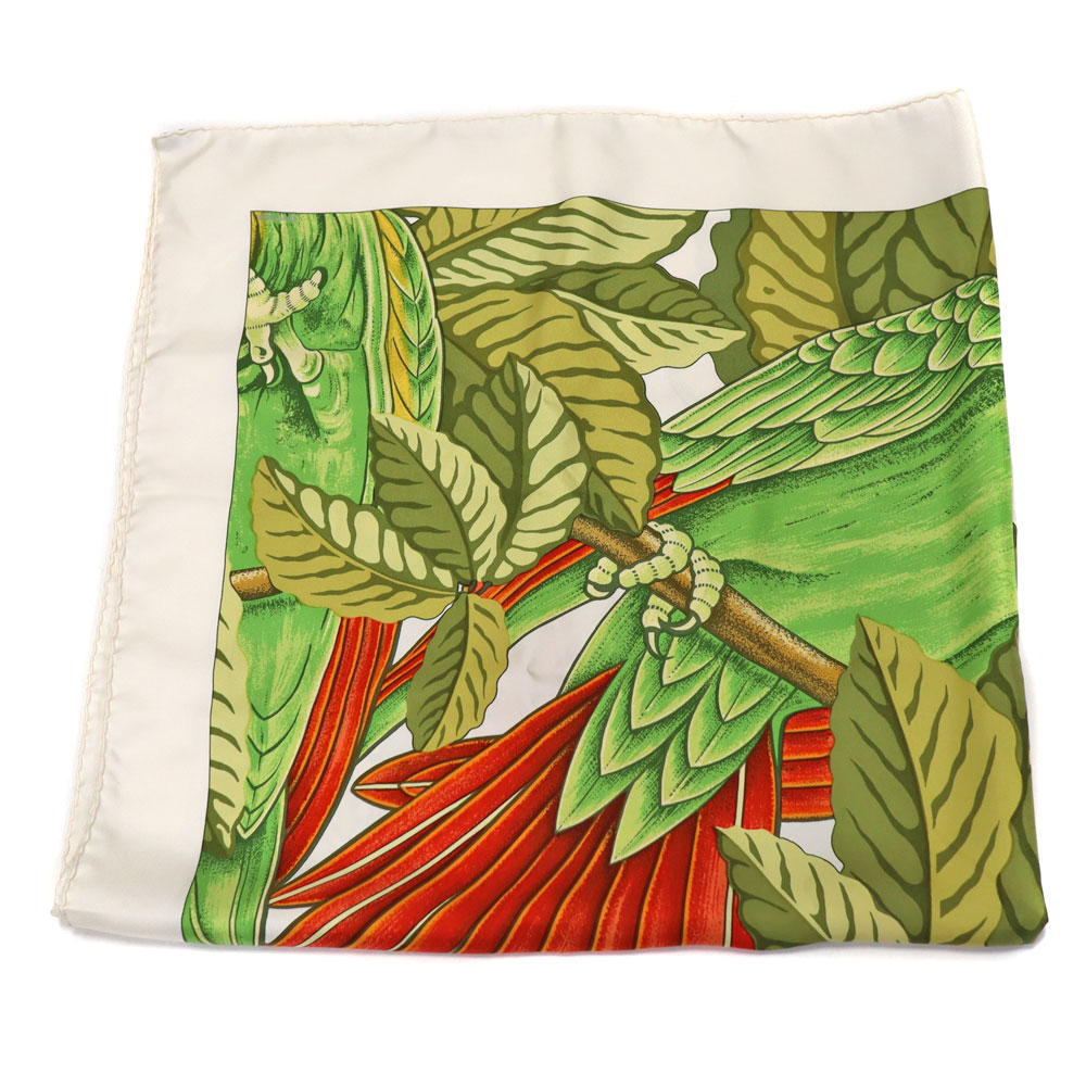毎年新柄が発表され、コレクターも多いエルメスのスカーフ「カレ」です。 カレとは正方形を現すフランス語で、エルメスのカレ90とは1辺約90cmのスカーフ・ハンカチを指します。 艶やかなシルク生地に鮮やかな色使いで、鳥が可愛らしく魅力的なアイテムです。 お探しの方はこの機会にぜひいかがでしょうか。