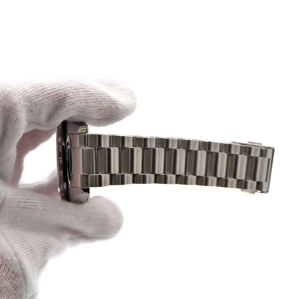 クロノグラフを搭載したモデルで、ホワイトとブラックのコントラストがお洒落な一本です。