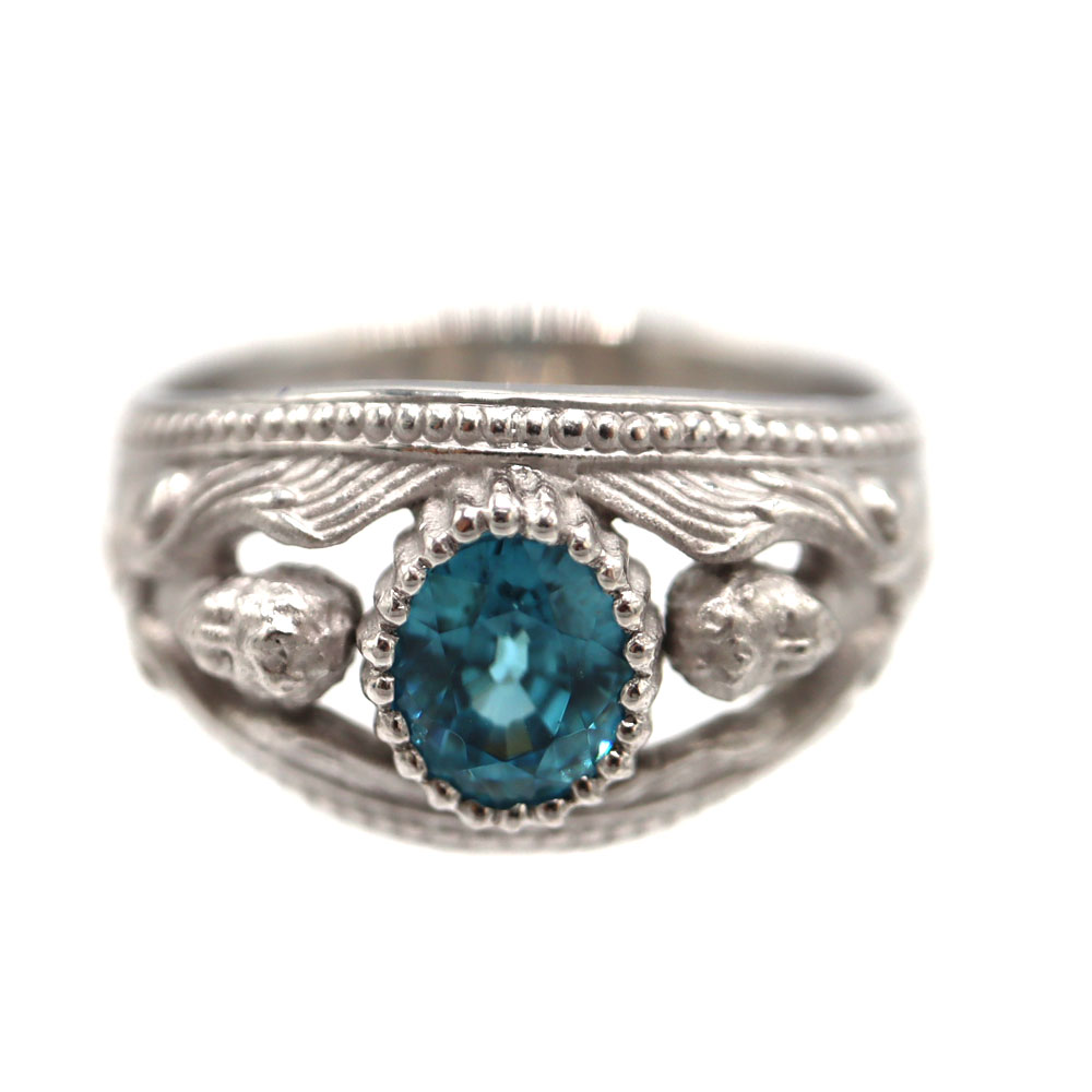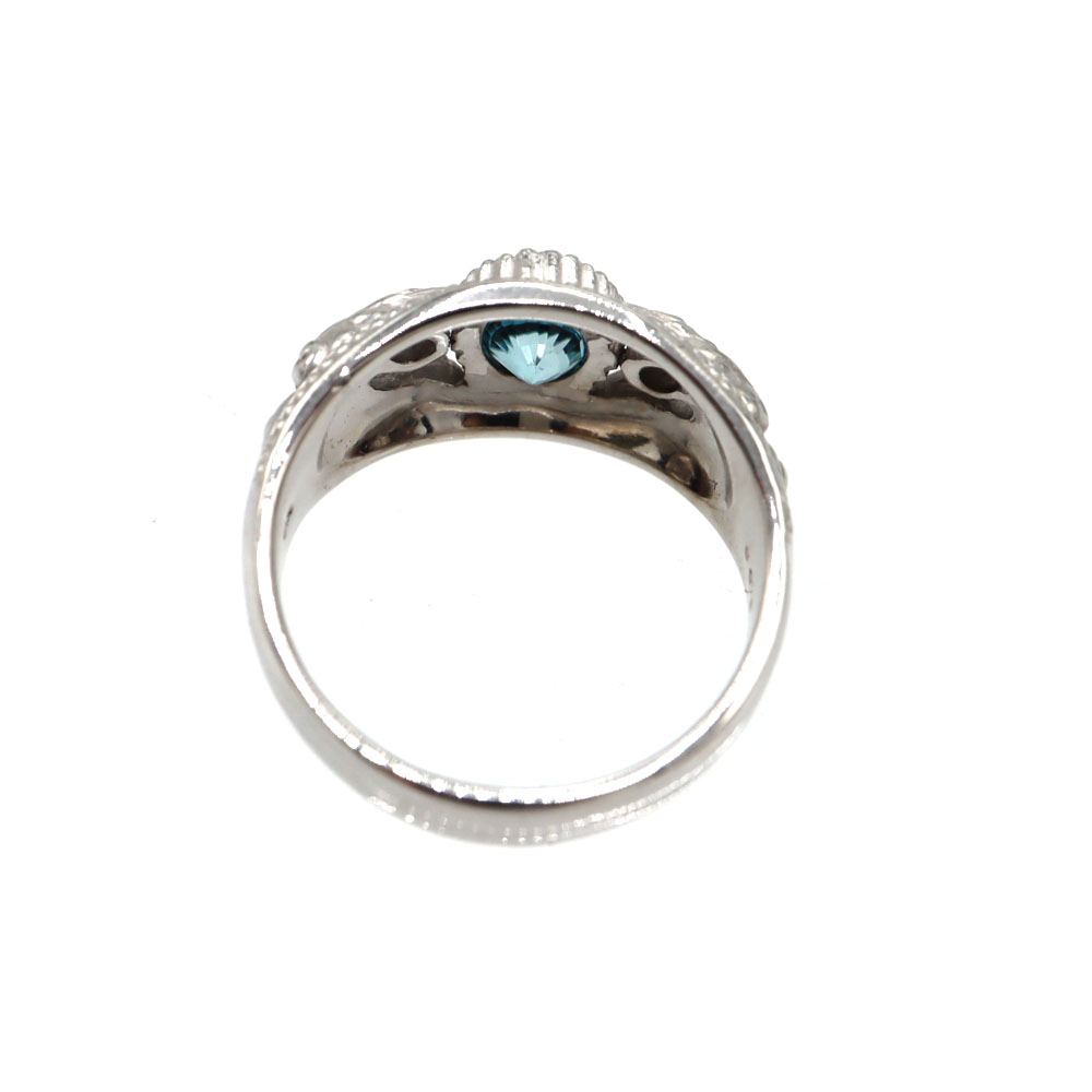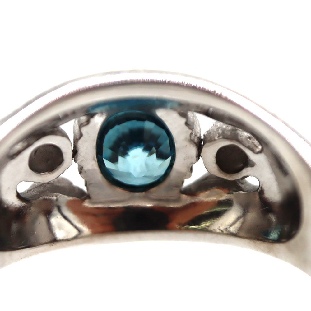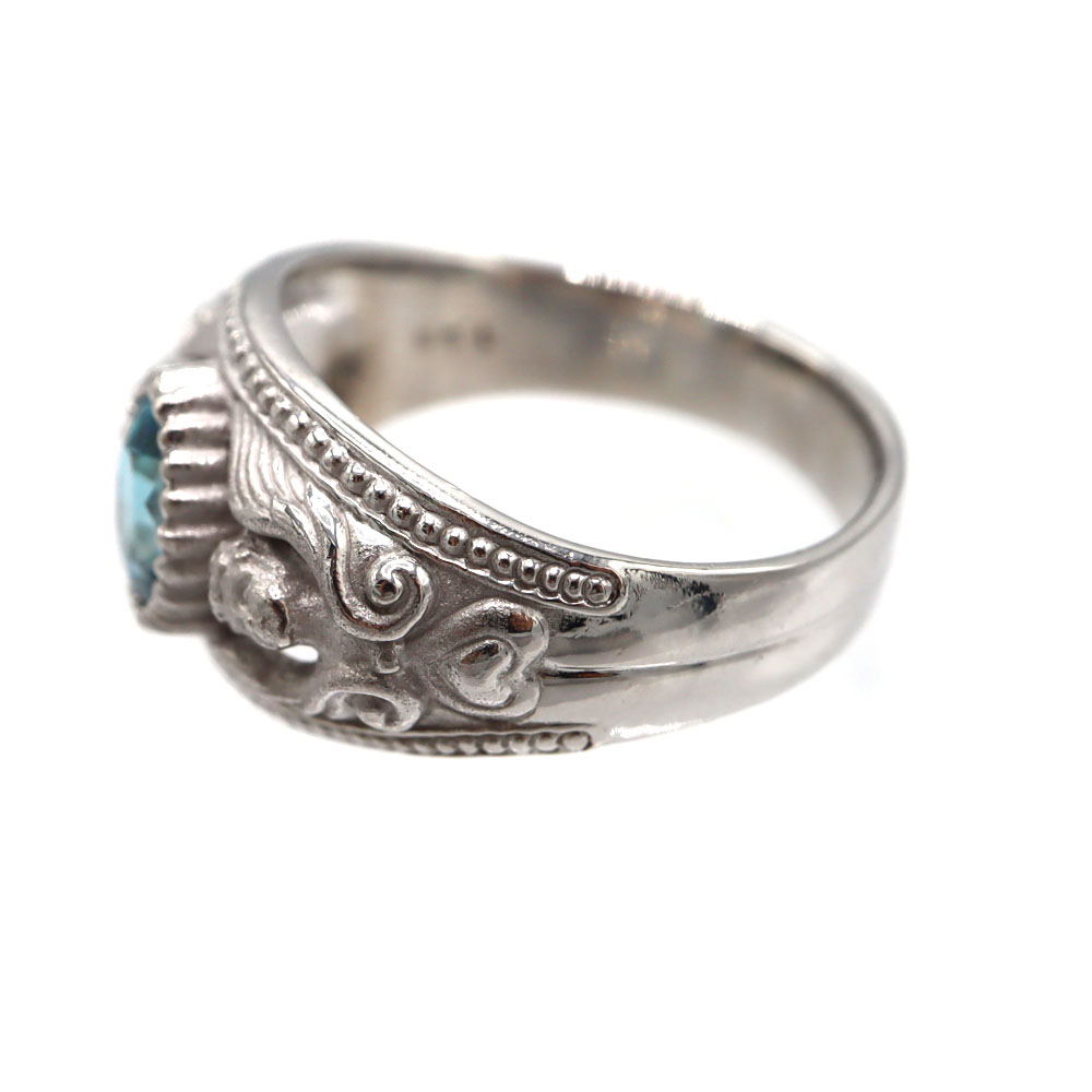 鮮やかなブルーの輝きが印象的な、ブルージルコンをあしらったK18ホワイトゴールドリングです。