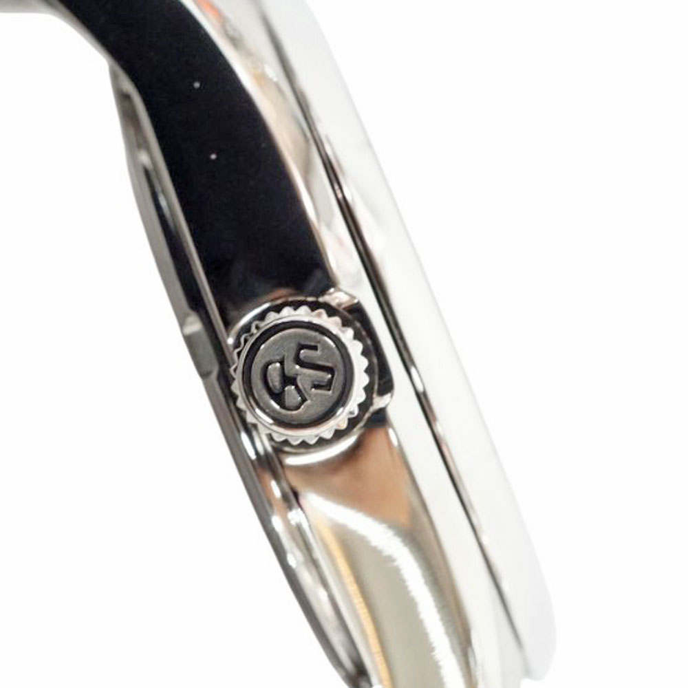 歪みのない美しい鏡面ときめ細やかな筋目仕上げの施されたケースは、静かにその存在感を主張してくれます。