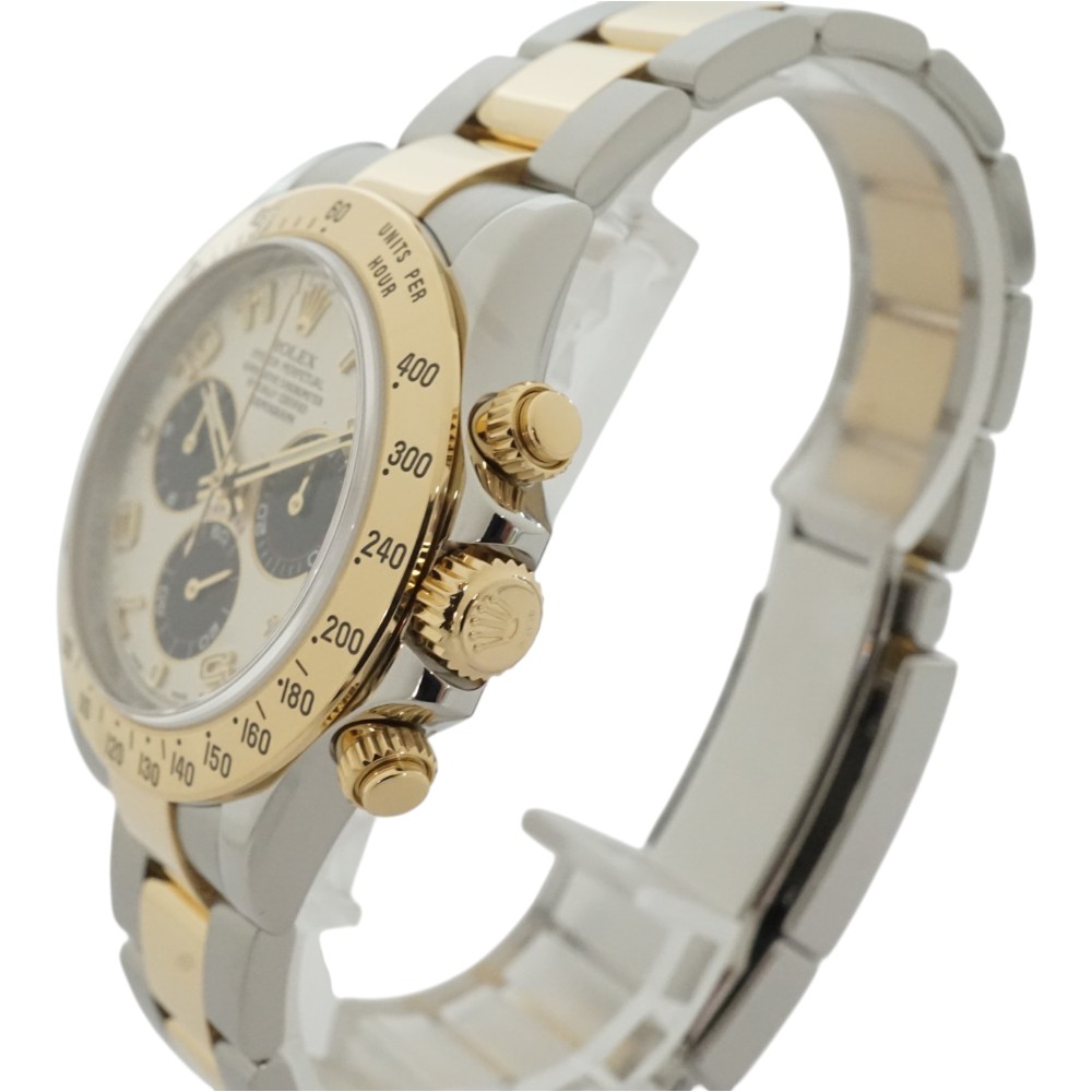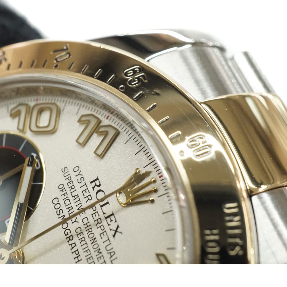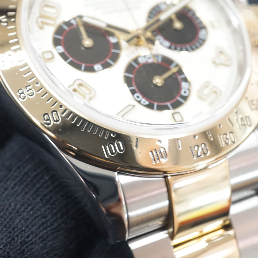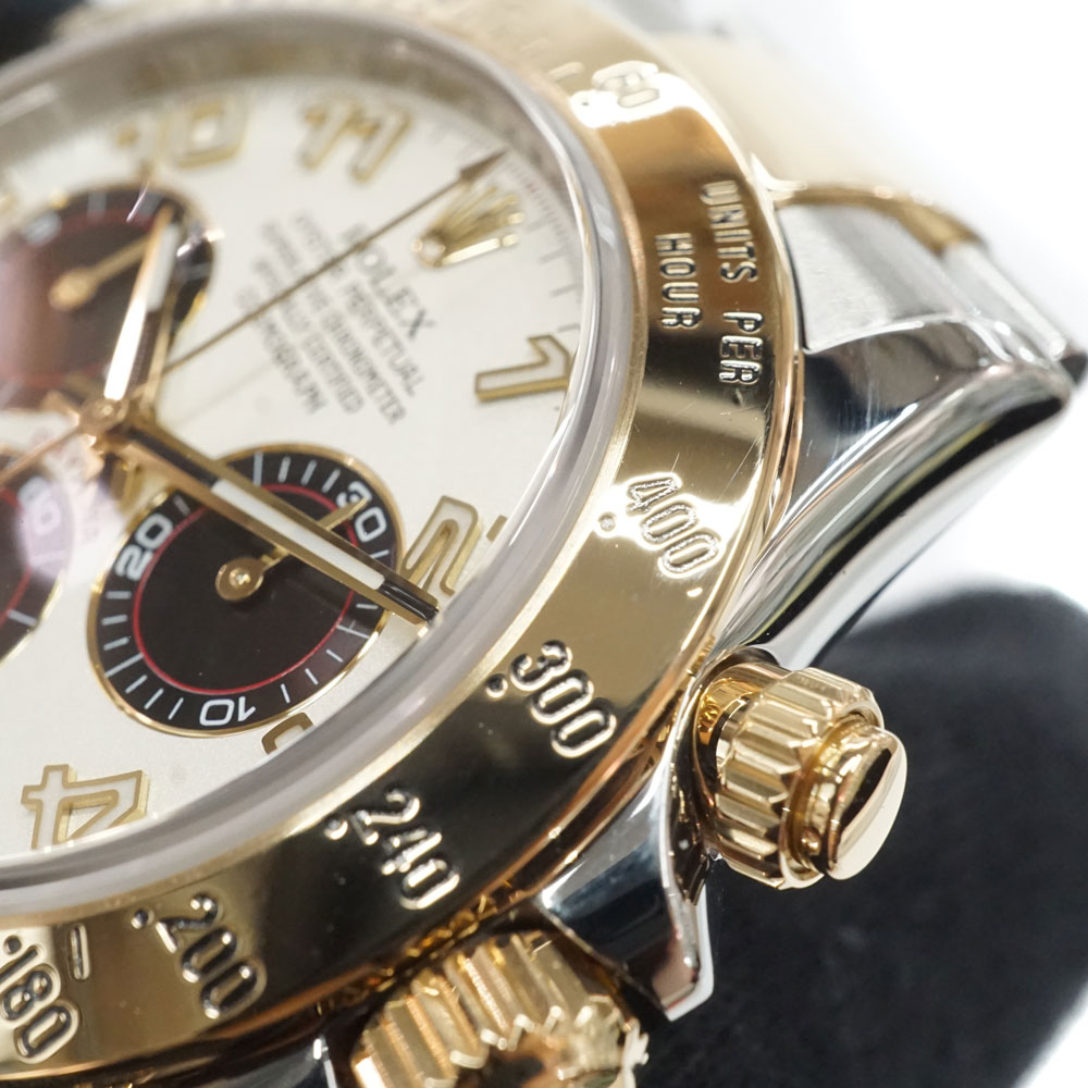 こちらのデイトナは、ステンレスとイエローゴールドを使用したゴージャスな印象のモデルとなっています。