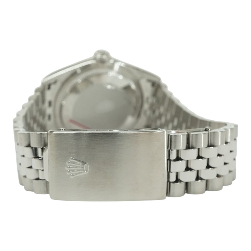デイトジャストとは午前0時頃瞬時に日付が変わるデイトジャスト機構、全回転式ローターを搭載したパーペチュアル機構、ロレックス三大機構を搭載したモデルです。