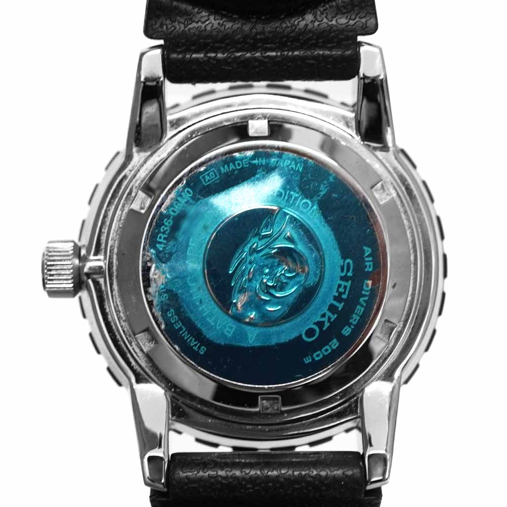 | 仕様 | 自動巻き キャリバー:4R36 パワーリザーブ:約41時間 日差:+18~+21秒(平置きにて計測) 防水:200m防水 逆回転防止ベゼル 日付、曜日表示機能 |