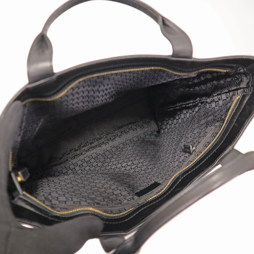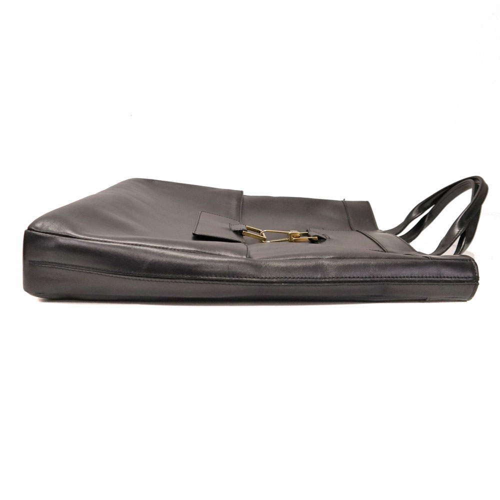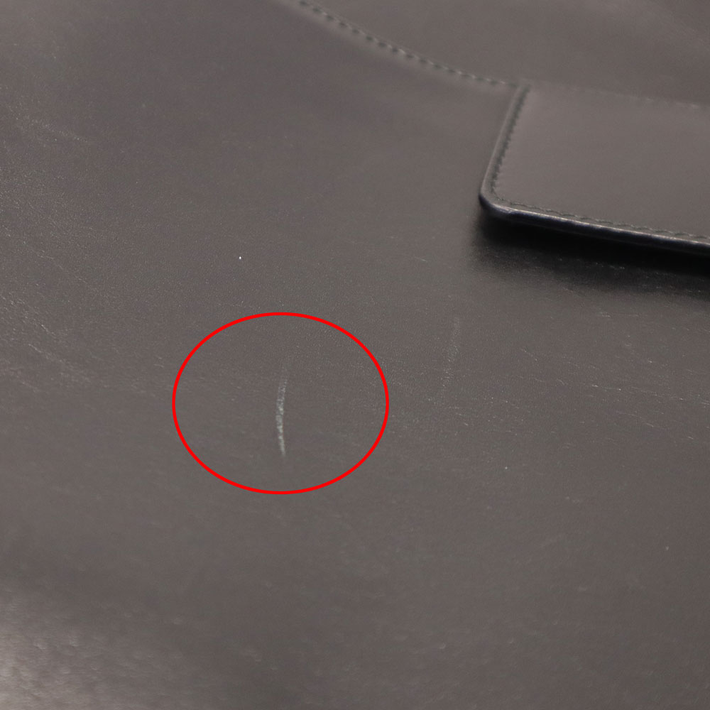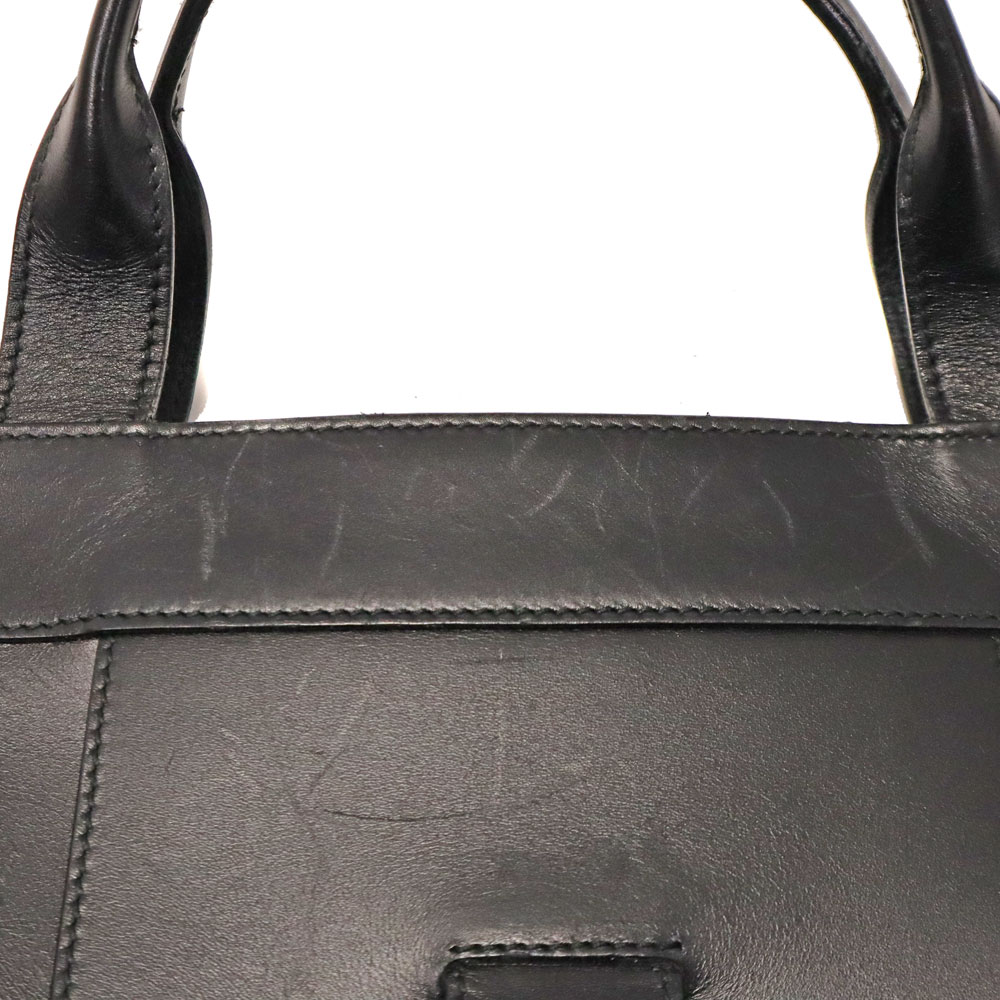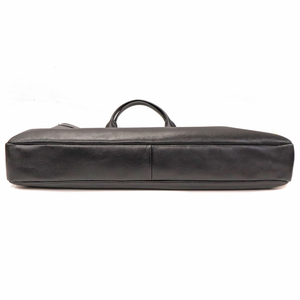 A4ファイルを横にして収納できるサイズ感。シンプルなブラックのレザーが使われているため通勤通学、デイリーユースにも最適なバッグです。