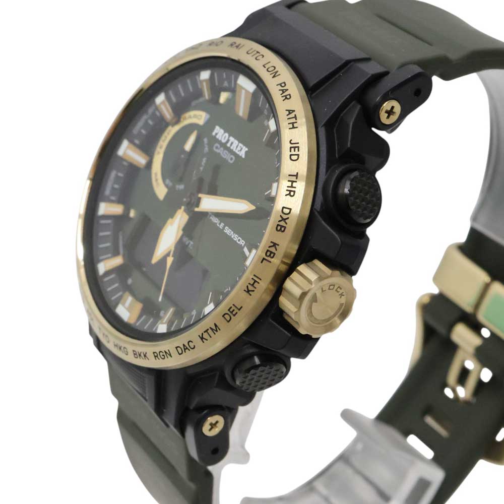 トリプルセンサー(方位・気圧/高度・温度)を搭載し、アウトドアシーンで活躍する本格仕様。 さらにタフソーラーや電波受信機能により、日常使いでも利便性の高いモデルとなっております。
