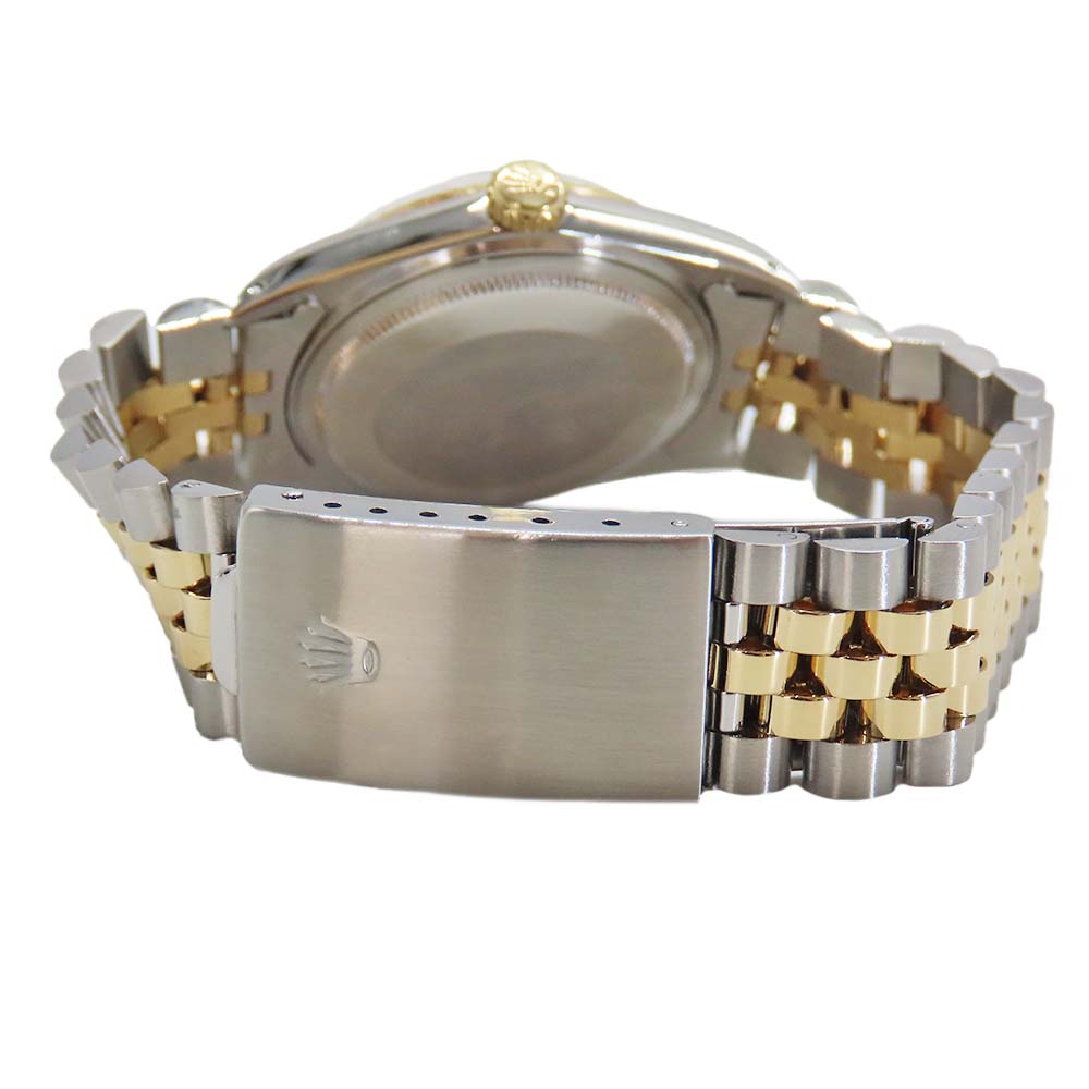 | 商品説明 | ロレックス「デイトジャスト 16013」は、ステンレスと18Kイエローゴールドを組み合わせたロレゾール仕様の36mmモデル。ムーブメントには、日付の早送り機能を初めて搭載したCal.3035を採用し、28,800振動のハイビートによる安定した精度が魅力です。風防は現行にはない強化アクリル製で、柔らかい光のにじみがヴィンテージならではの雰囲気を演出します。フルーテッドベゼルとジュビリーブレスが上品さを引き立て、ビジネスからカジュアルまで幅広く活躍。1980年代ロレックスの魅力が詰まった一本で、現行モデルにはない味わいを求める方に特におすすめです。