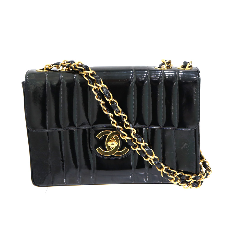 シャネル Chanel チェーンショルダーデカマトラッセ30 マドモアゼル エナメル ブラック レディース【中古】