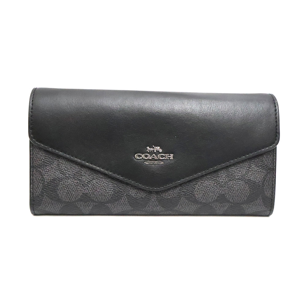コーチ Coach CX160 長財布 二つ折り長財布 ユニセックス PVC/レザー ブラック【中古】
