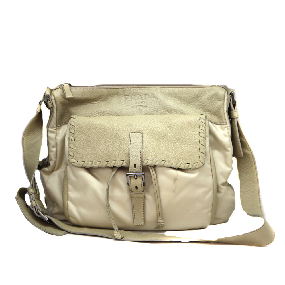 プラダ Prada BT0584 ショルダーバッグ ユニセックス レザー ナイロン ベージュ【中古】