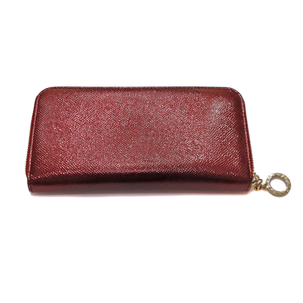 ブルガリ Bvlgari 287078 ラウンドファスナー 長財布 ピンク メタリック レザー レディース 【中古】