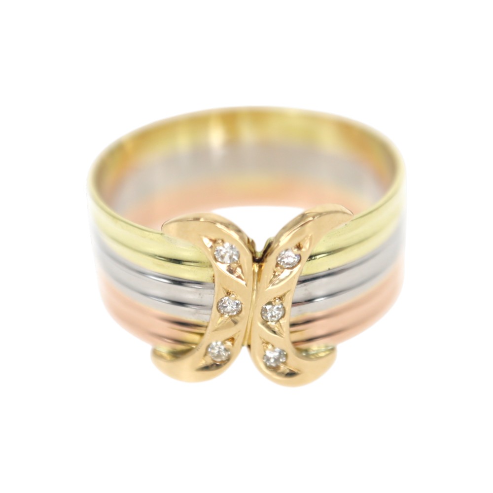 K18/Pt900 YG/PG ダイヤモンド 3カラーデザインリング レディース 17号【中古】