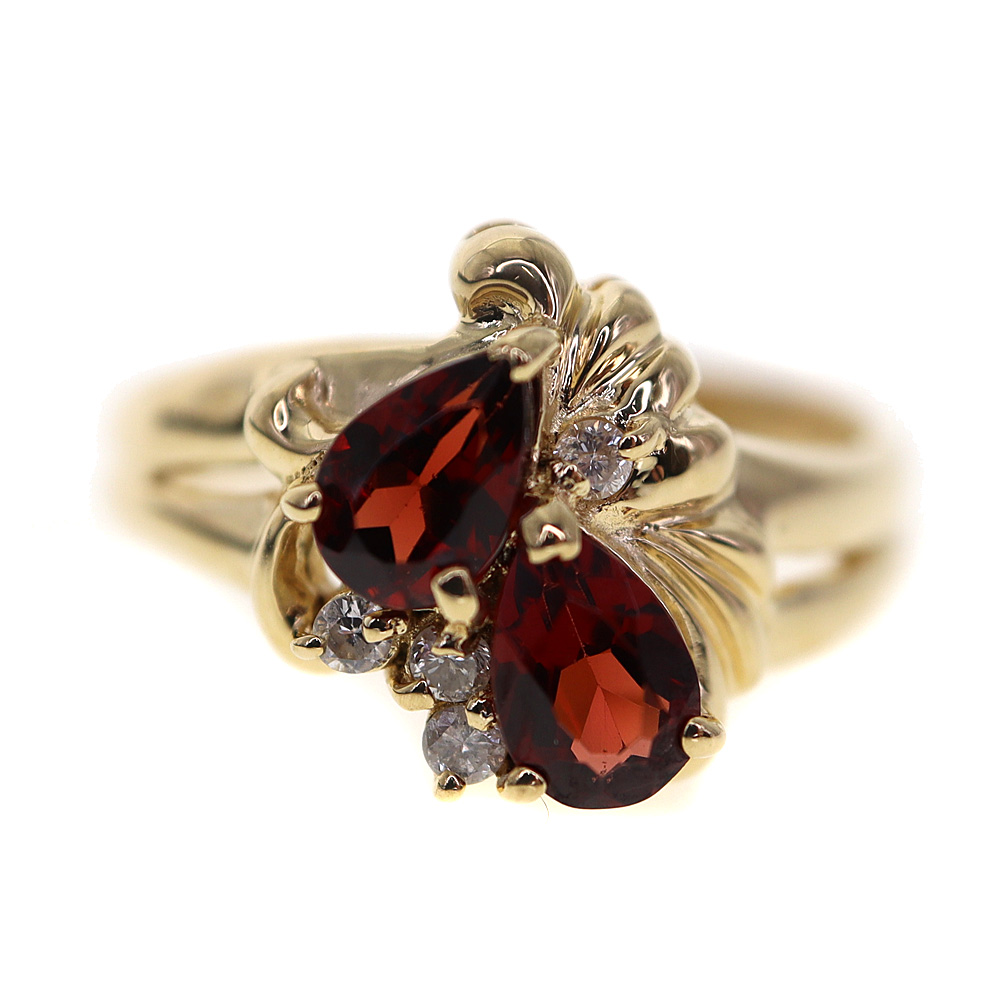 K18 18金 ガーネット ダイヤモンド リング 指輪 レディース イエローゴールド【中古】