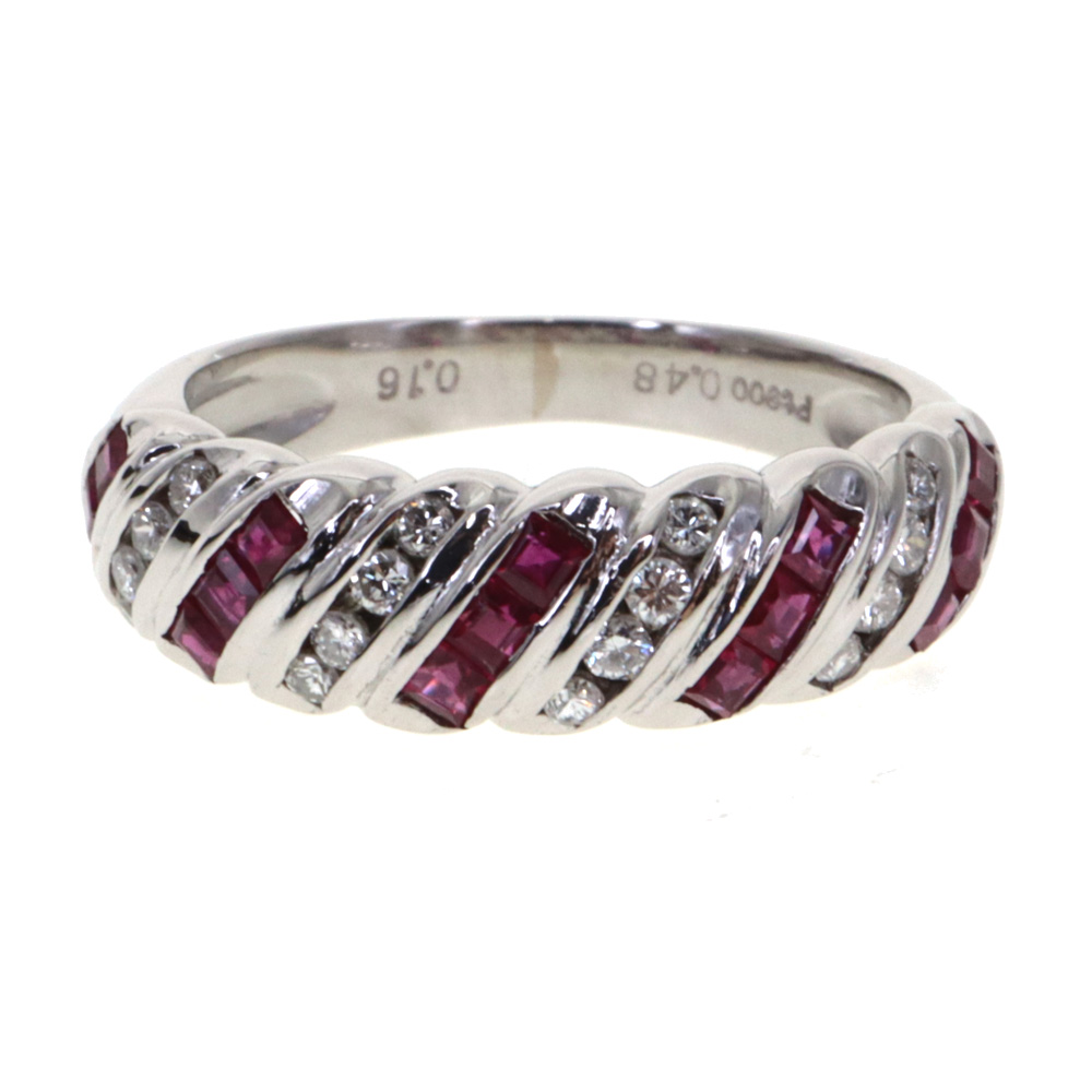 Pt900 プラチナ900 ダイヤモンド ルビー リング 指輪 レディース シルバーカラー【中古】