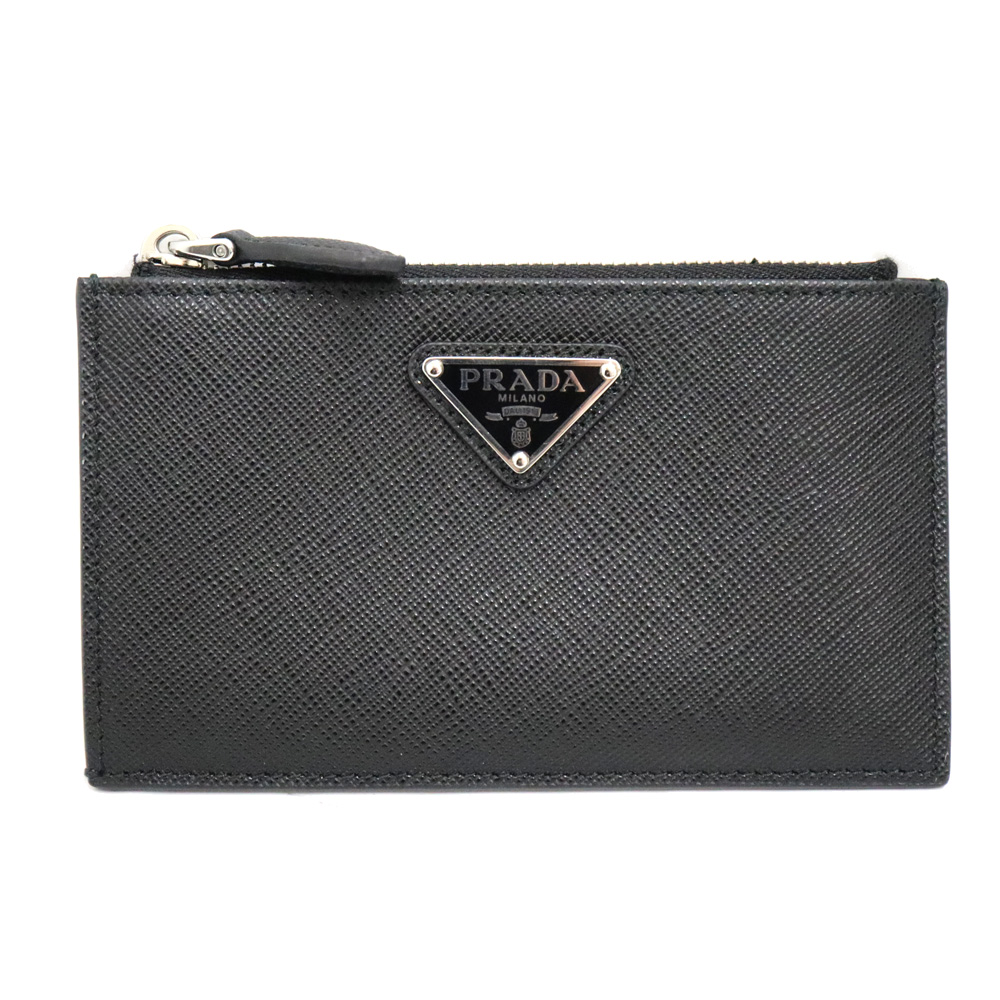 プラダ Prada 1MC086 トライアングルケース カード入れ ユニセックス サフィアーノレザー ブラック【中古】