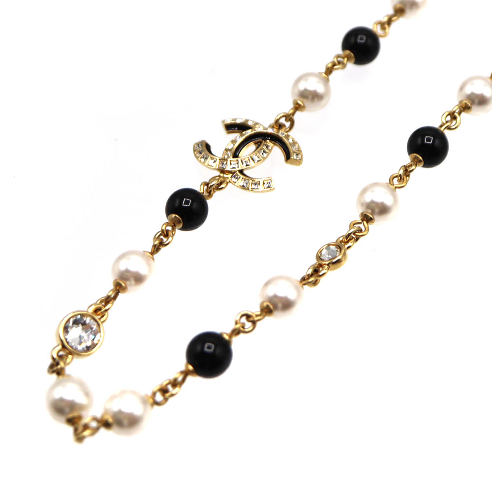 シャネル Chanel ココマークパールネックレス 金属素材 フェイクパール ゴールド ブラック ホワイト レディース 【中古】