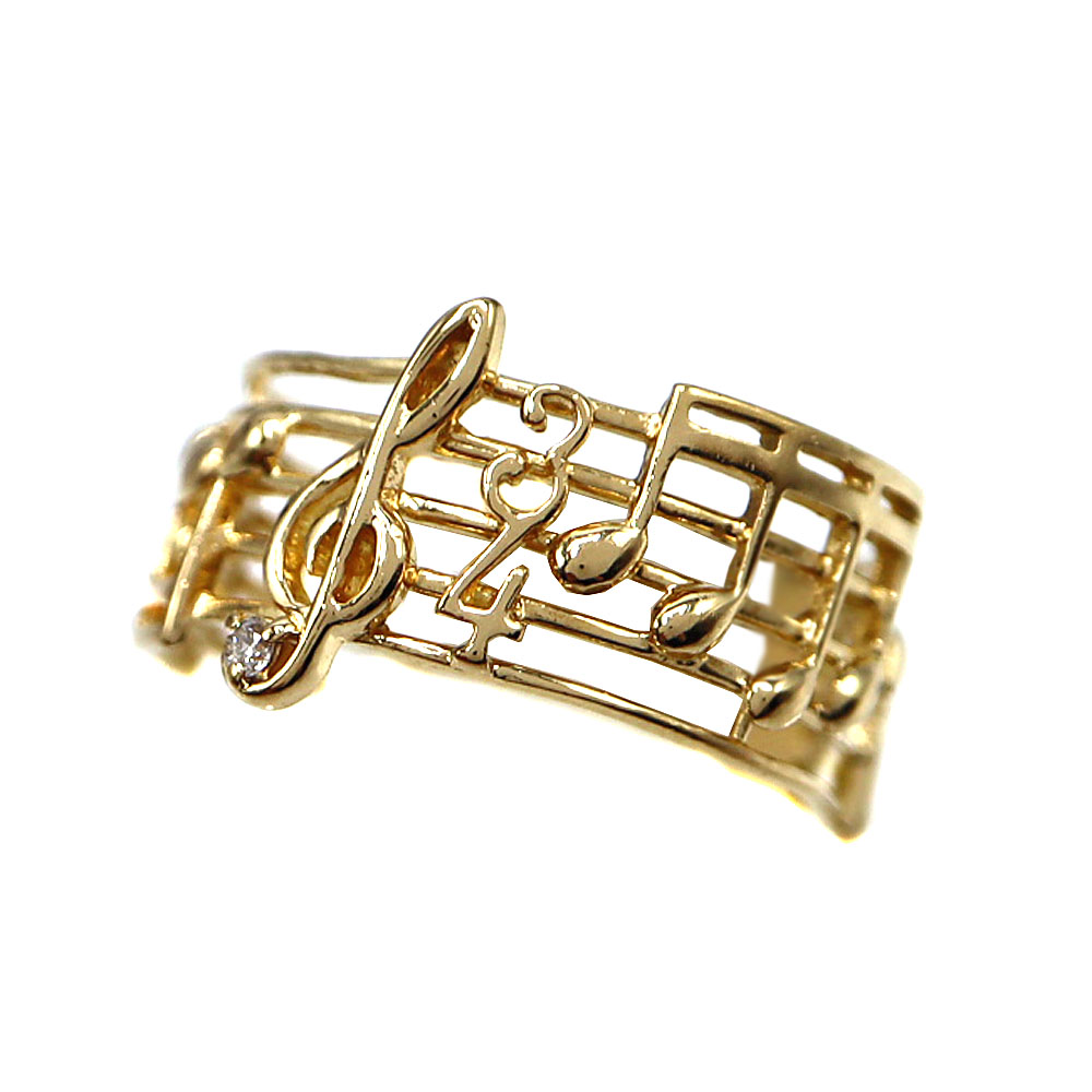 K18 18金 D0.02ctリング 五線譜 モチーフリング ダイヤモンド 指輪 ジュエリー レディース【中古】