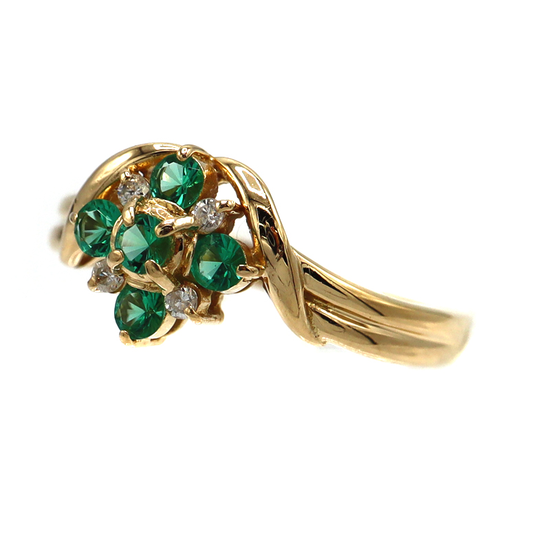 K18 18金 エメラルド0.20ct/ダイヤモンド0.05ct 合成エメラルド ゴールド レディース【中古】