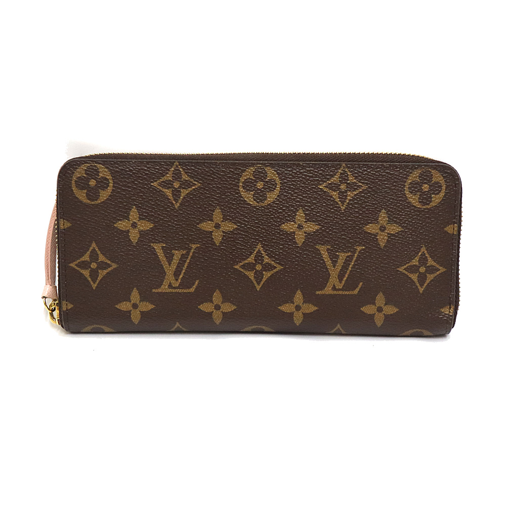 ルイヴィトン Louis vuitton M61298 ポルトフォイユ・クレマンス ラウンドファスナー財布 レディース PVC レザー ブラウン×ライトピンク【中古】