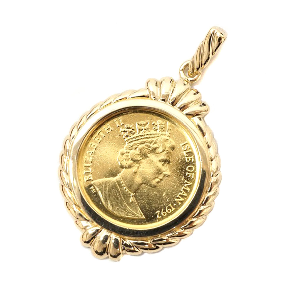 K24 K18枠 ゴールド マン島キャットコイントップ 金貨 1/10oz ジュエリー アクセサリー 【中古】