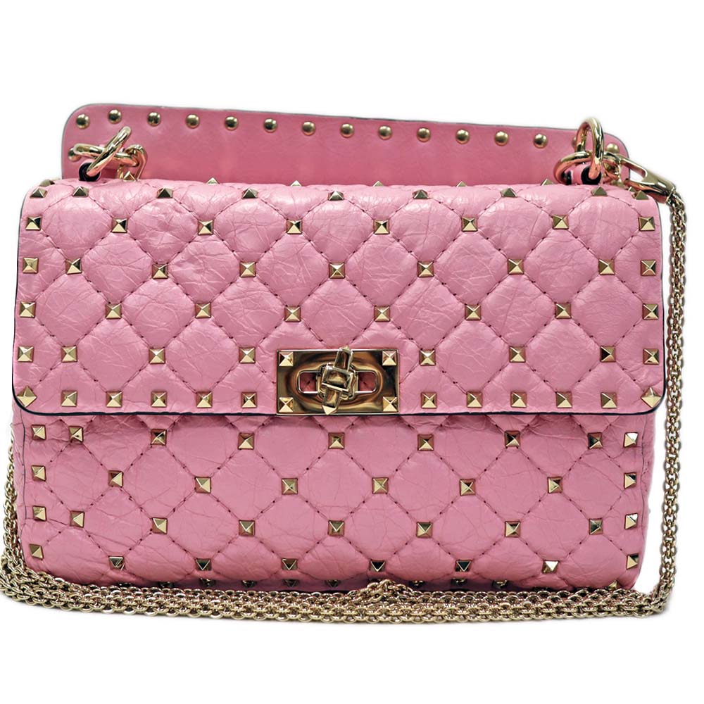 ヴァレンティノ Valentino スタッズショルダーバッグ レザー レディース ピンク【中古】