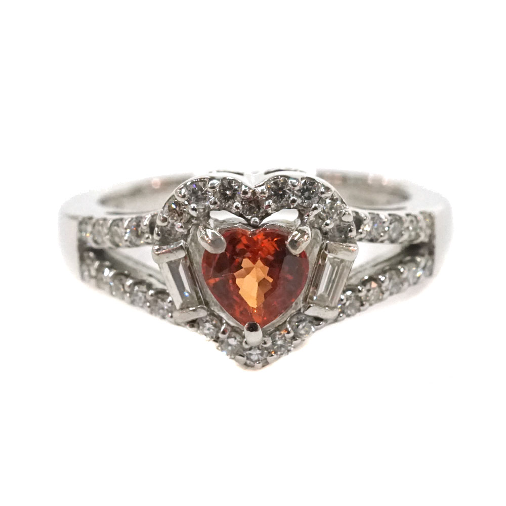 K18WG 18金ホワイトゴールド オレンジサファイア 0.54ct ダイヤモンド 0.31ct リング 指輪【中古】