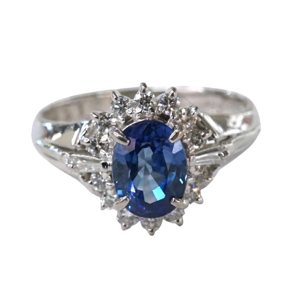 Pt900 プラチナ リング 指輪 サファイア1.29ct ダイヤモンド0.25ct【中古】