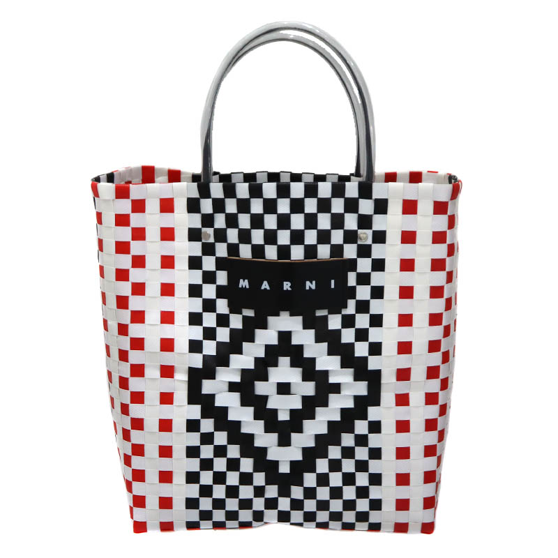 マルニ MARNI スクエアショッピングバッグ ハンドバッグ レッド ホワイト ブラック【中古】