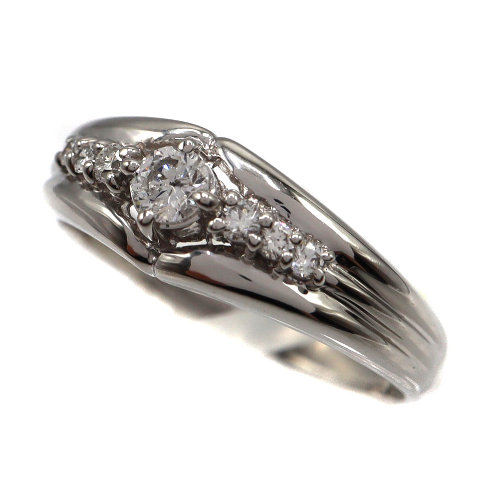 プラチナ900 Pt900 D0.14/0.10ctリング プラチナ ダイヤモンド 指輪 レディース シルバー レディース【中古】