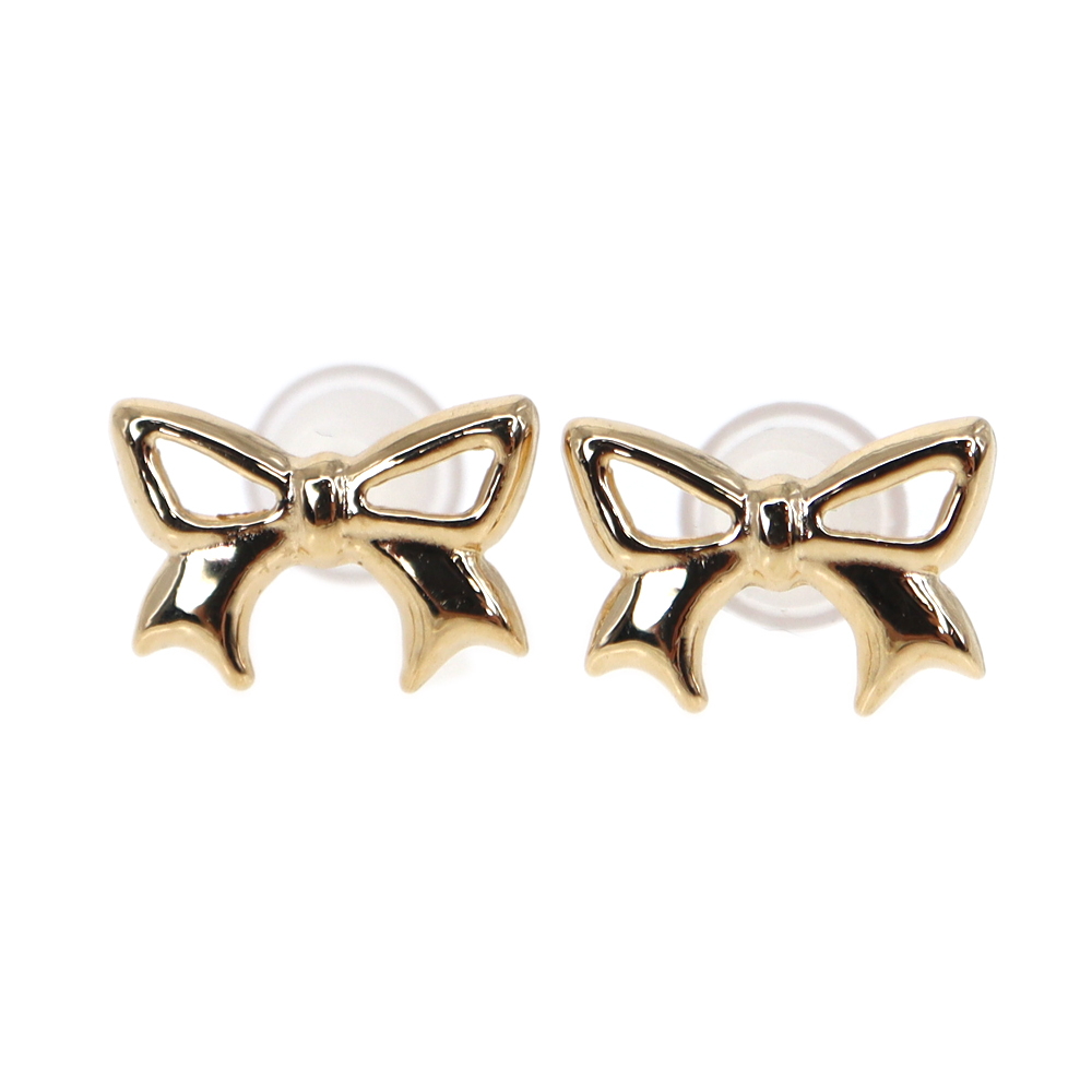 K18 18金 リボン ピアス 両耳 イエローゴールド【中古】