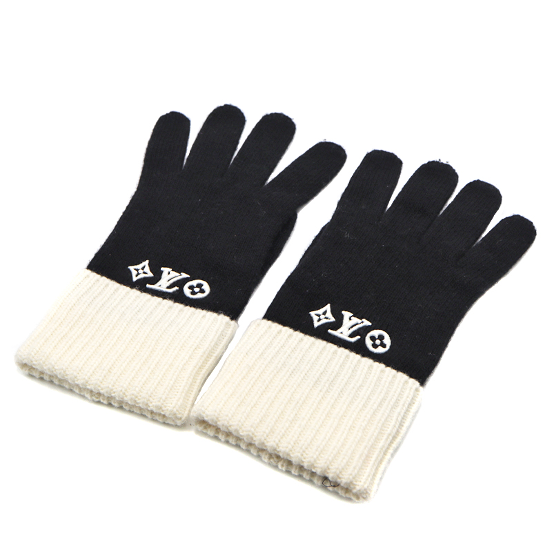 ルイヴィトン Louis Vuitton M77929 ゴンLVヘッドライン 手袋 ウール ブラック ホワイト 【中古】