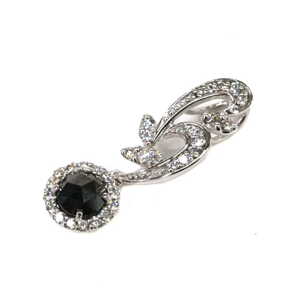 K18WG 18金ホワイトゴールド ペンダントトップ ブラックダイヤモンド1.22ct ダイヤモンド0.48ct【中古】