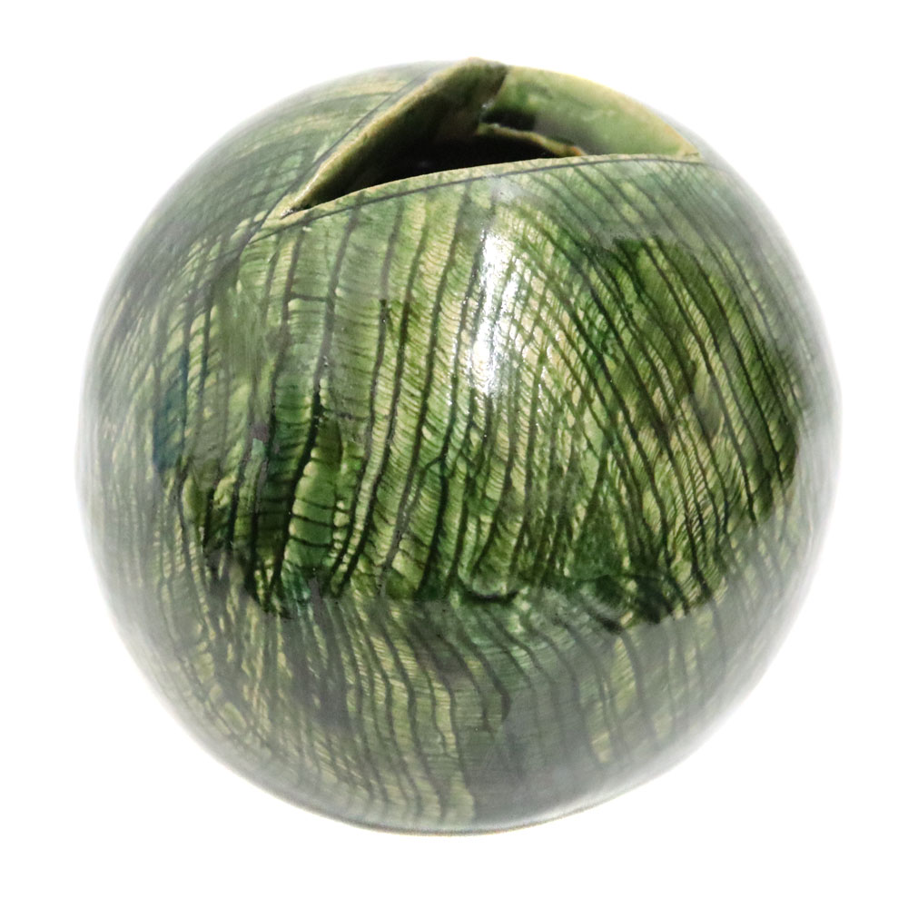 織部焼 織部球 花瓶 グリーン 緑 陶器 ユニセックス【中古】