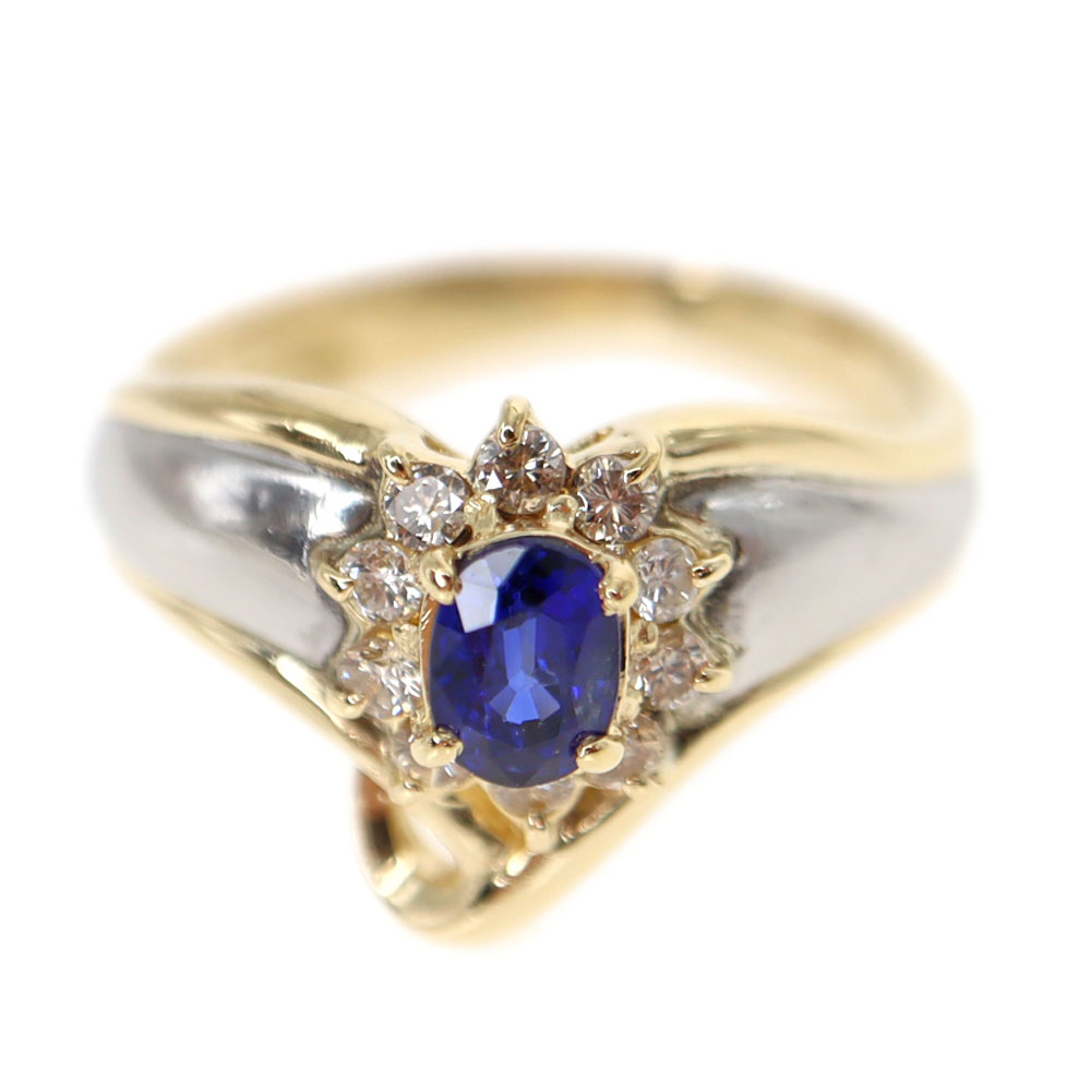 K18/Pt900 サファイア ダイヤモンド リング レディース 約7号 【中古】