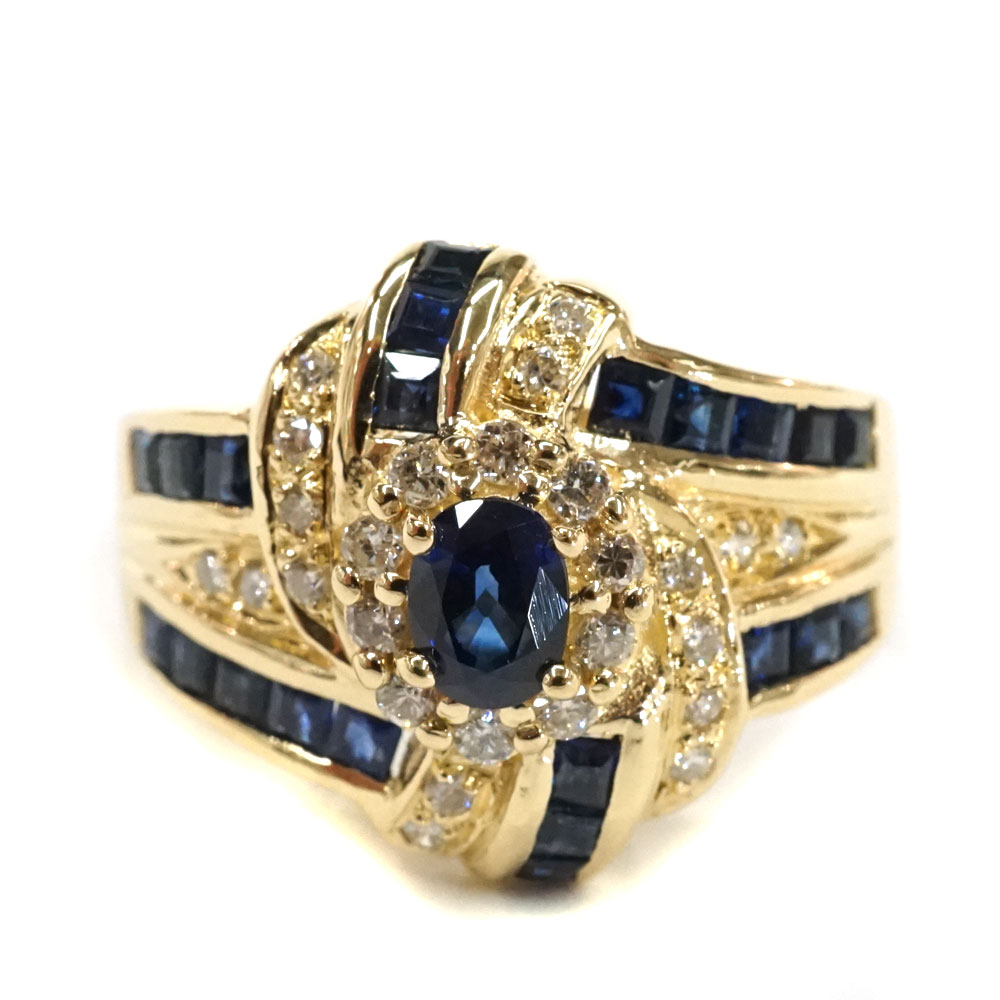 K1818金 リング 指輪 サファイヤ1.31ct ダイヤモンド0.23ct【中古】