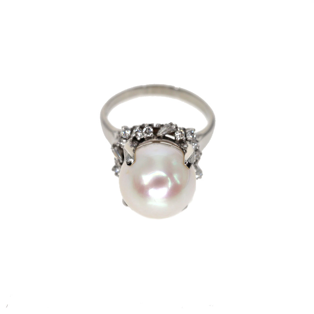 Pt900 プラチナ900 パール ダイヤモンド リング メンズ シルバー系【中古】