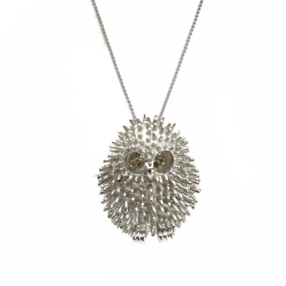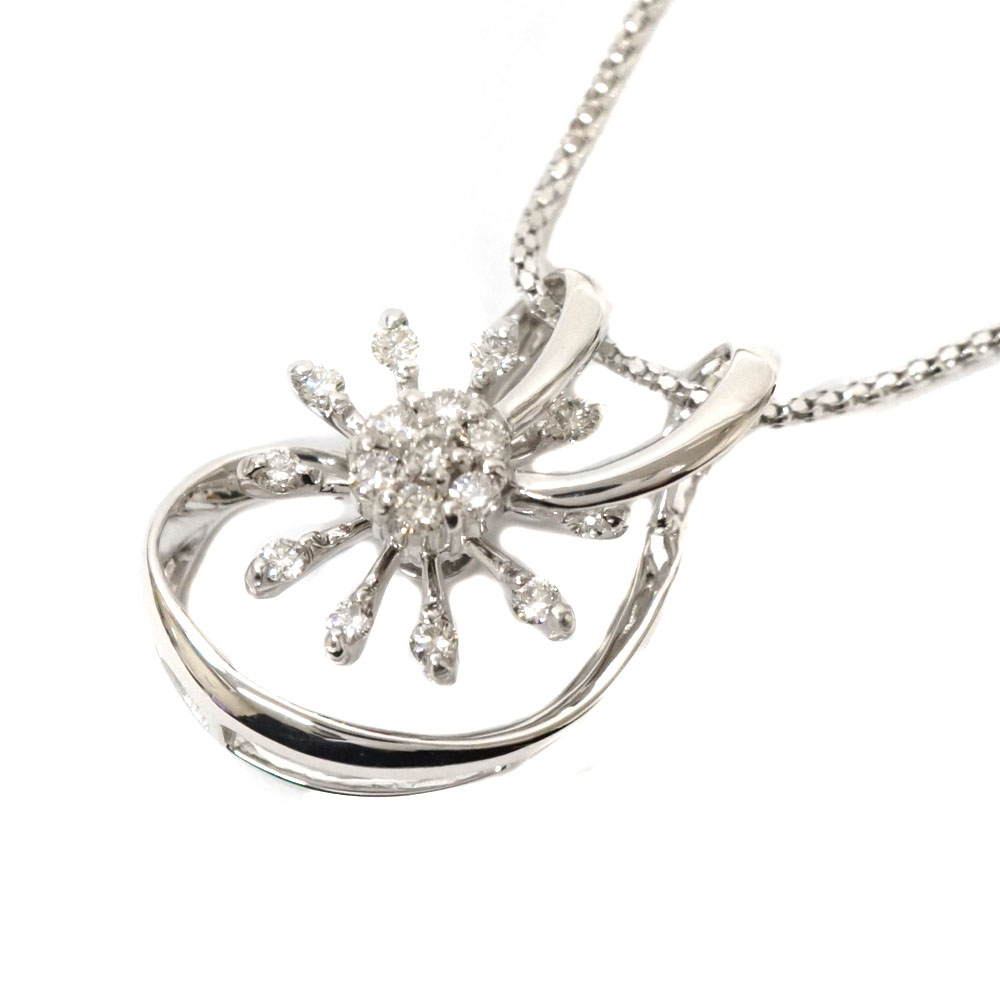 K18WG 18金ホワイトゴールド D0.16ct 梟 ネックレス【中古】