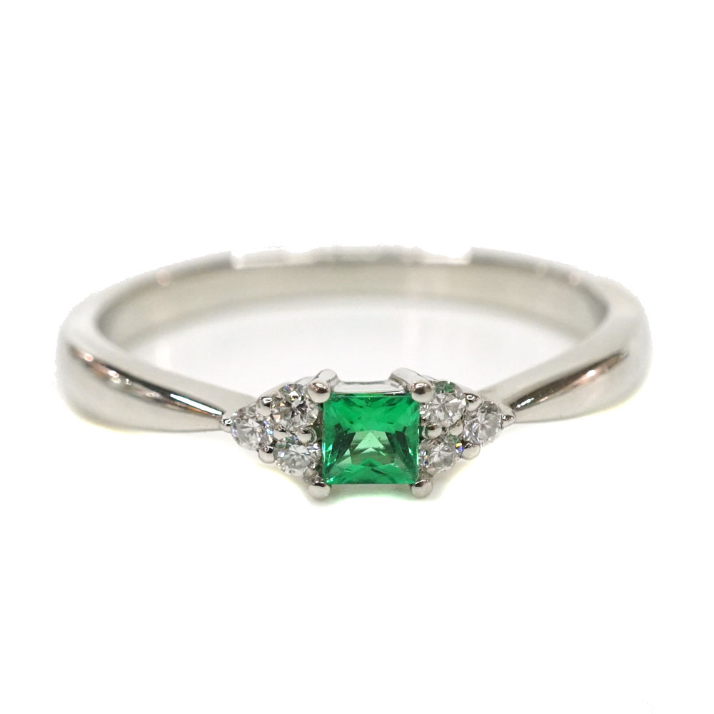 Pt950 プラチナ リング 指輪 エメラルド0.12ct ダイヤモンド0.08ct【中古】