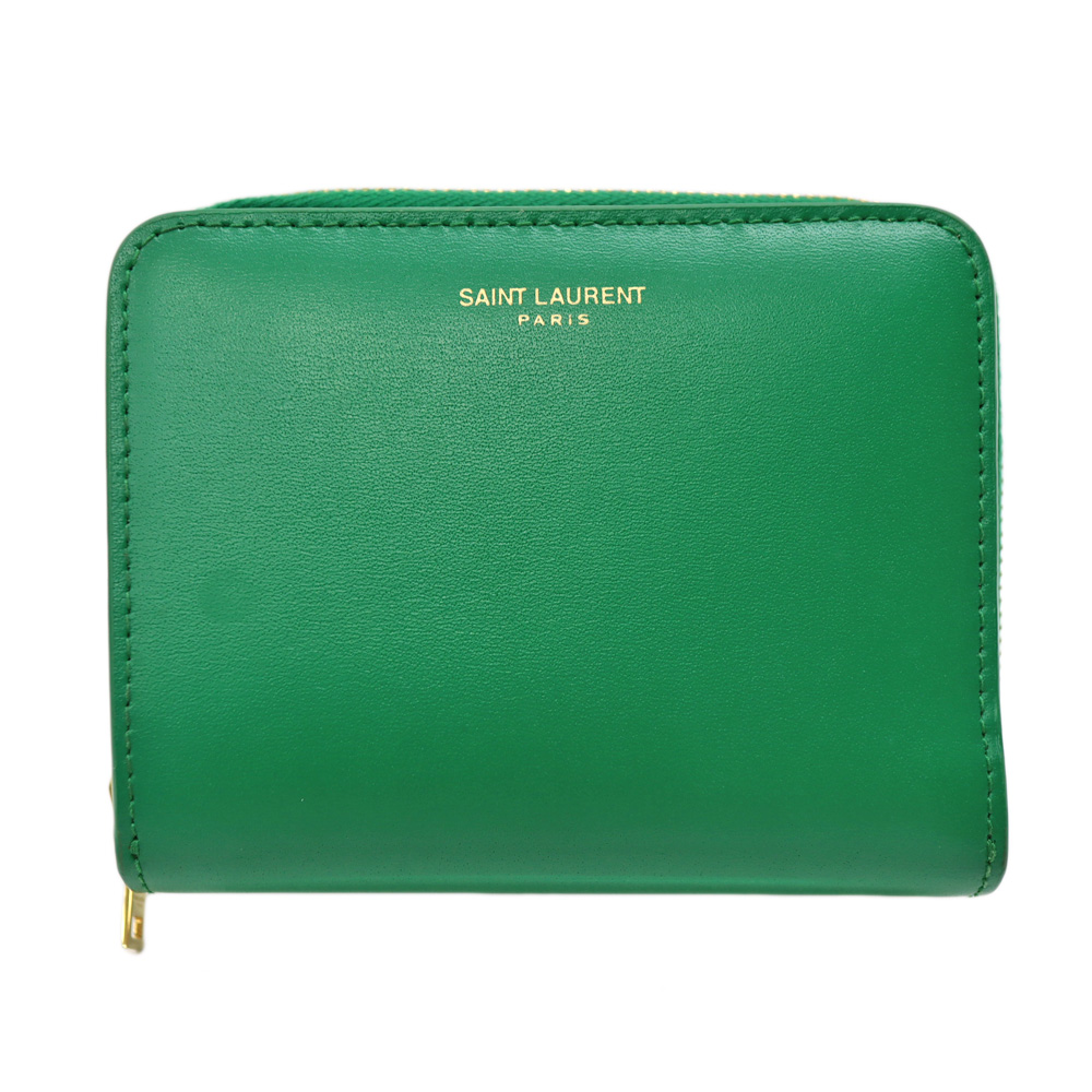 サンローラン Saintlaurent 668319 三つ折り財布 コンパクトウォレット レディース グリーン レザー【中古】