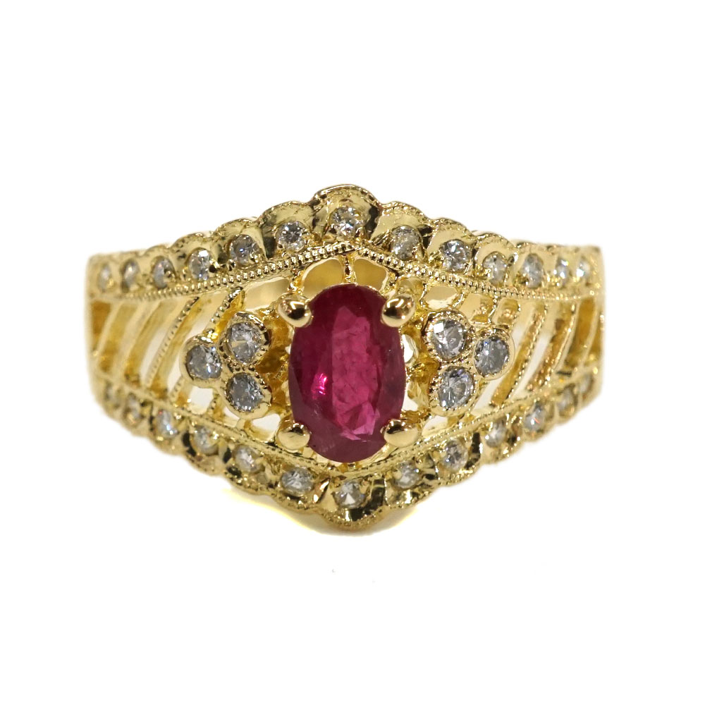 K18 18金 ルビー0.63ct ダイヤモンド0.25ct リング アクセサリー 指輪【中古】