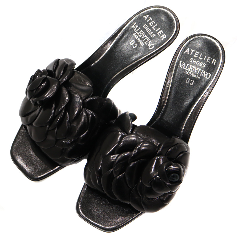 ヴァレンティノ Valentino UWOSOAU3 アトリエヒールサンダル レザー ブラック 花モチーフ 【中古】