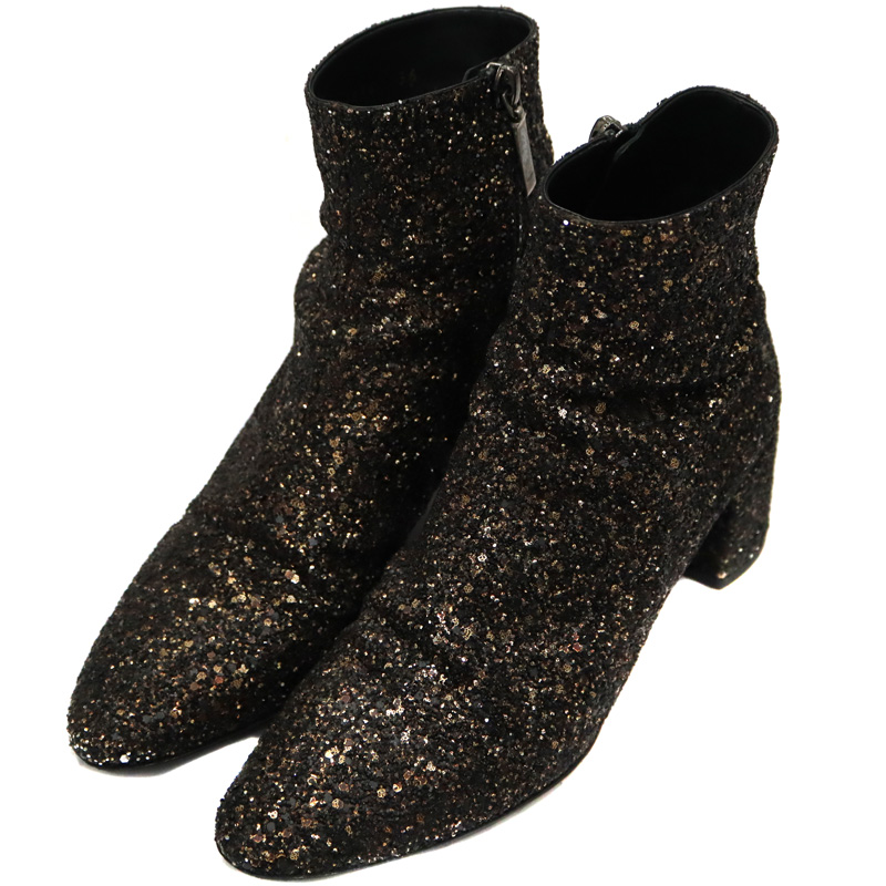 サンローラン Saintlaurent 529376 ショートブーツ スパンコール レザー ブラウン ブラック【中古】